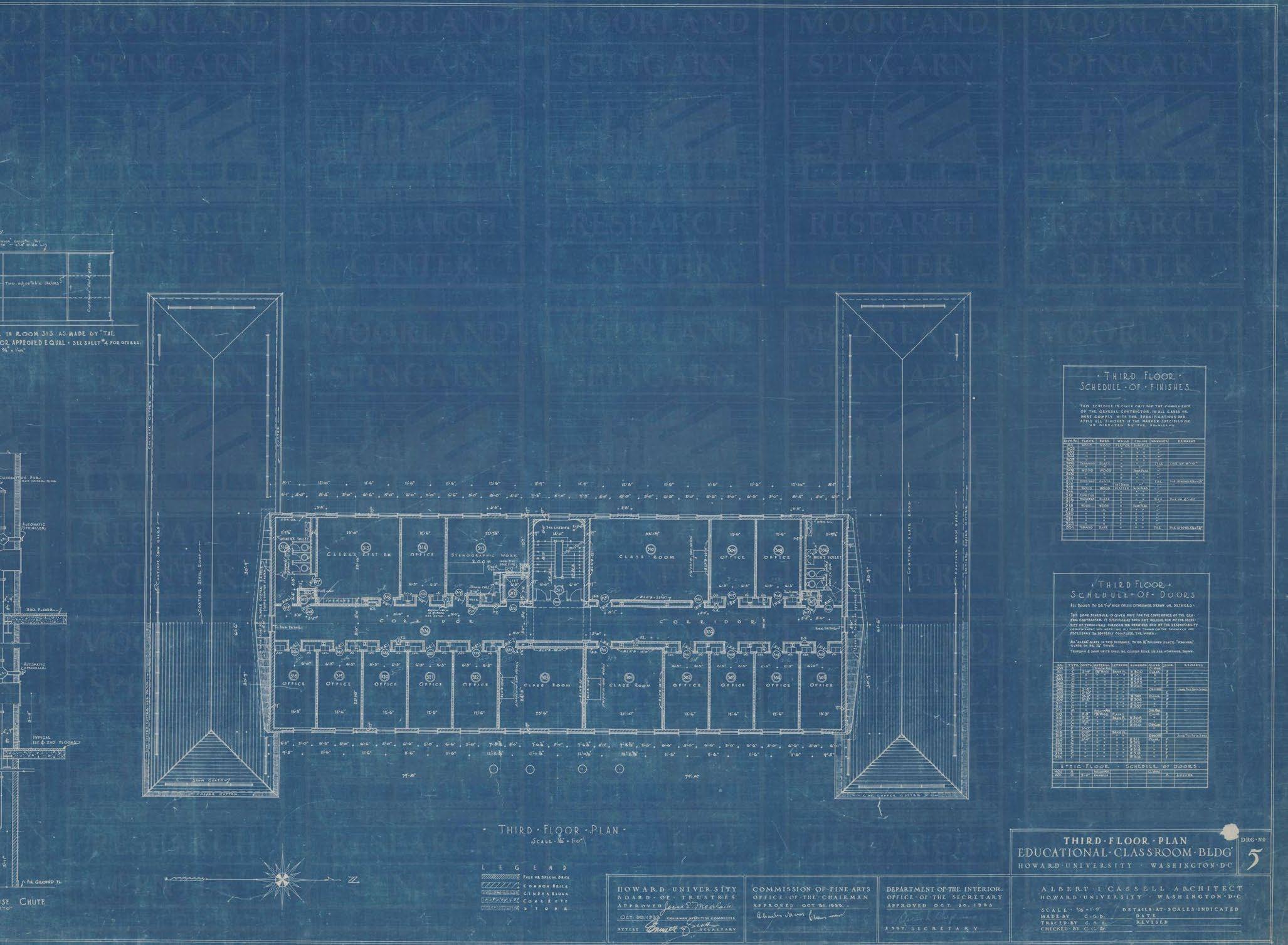 Douglass Hall third floor plan, 1933 blueprint (HU MSRC), p. 110