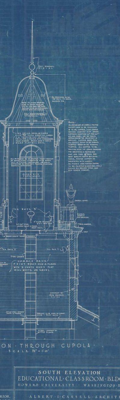 original research, and archives. Still, the structure held. “Pressure and Progress,” chapter 4, recalls the night of the event and the resulting actions Howard University took to stabilize, remediate, and then renovate and modernize Douglass Hall. From a framework of the American Institute of Architecture design excellence, the chapter tracks the evolution of Douglass Hall into a highly sustainable and resilient structure to serve the next generations.