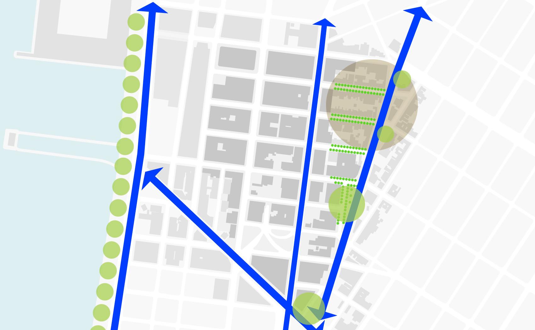 We are inspired by the Hudson Square Connection’s broad understanding of streetscape which is particularly suited to creating a dense urban district with a lively, inviting, and commercially successful public realm. To achieve this, street plantings and furniture, paving and environmental remediation must work with commercial, residential and retail activity, programmed events, and traffic mitigation One way to understand this concept is by considering the multiple layers of infrastructure, program and activity which make up Hudson Square. The complicated interaction between these layers provokes many questions about how the streetscape must respond. This dialog shapes our approach to the development of the Hudson Square Streetscape Plan, as outlined by the five tasks enumerated in the RFP.