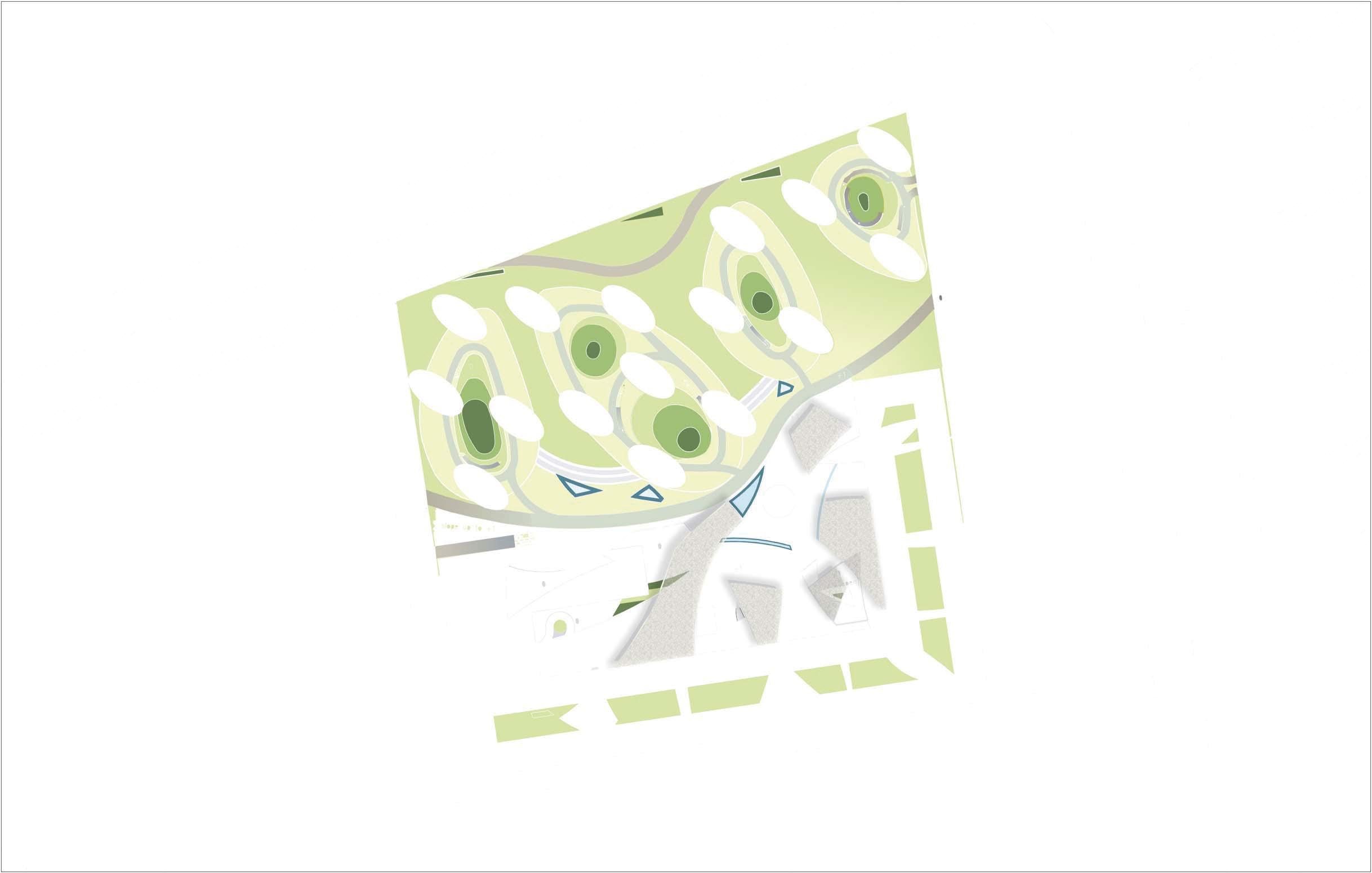 • Parking will be shaded, located in a lower level cityscape with access to all parts of the new city. Landscaped sunlit open vertical connections between vehicular levels and pedestrian street levels above provide a sense of orientation between all parts of the city.