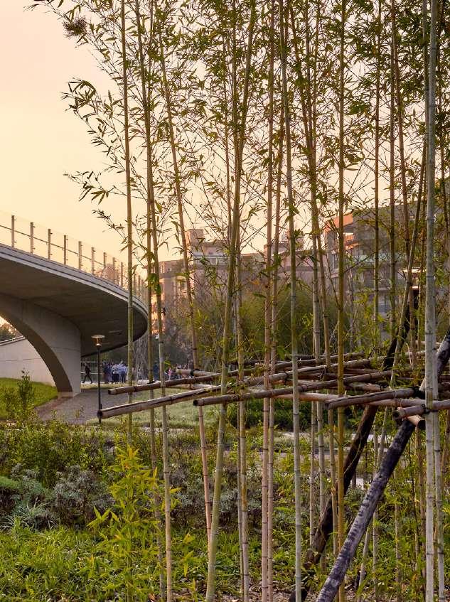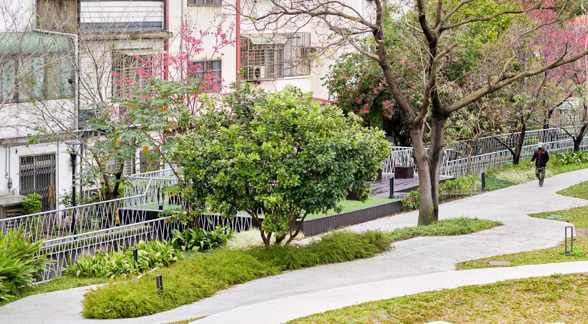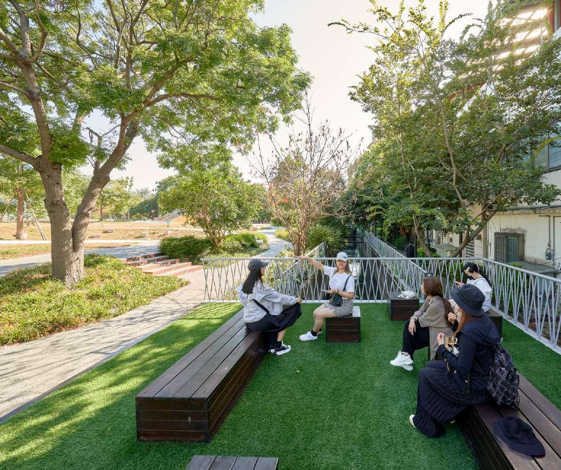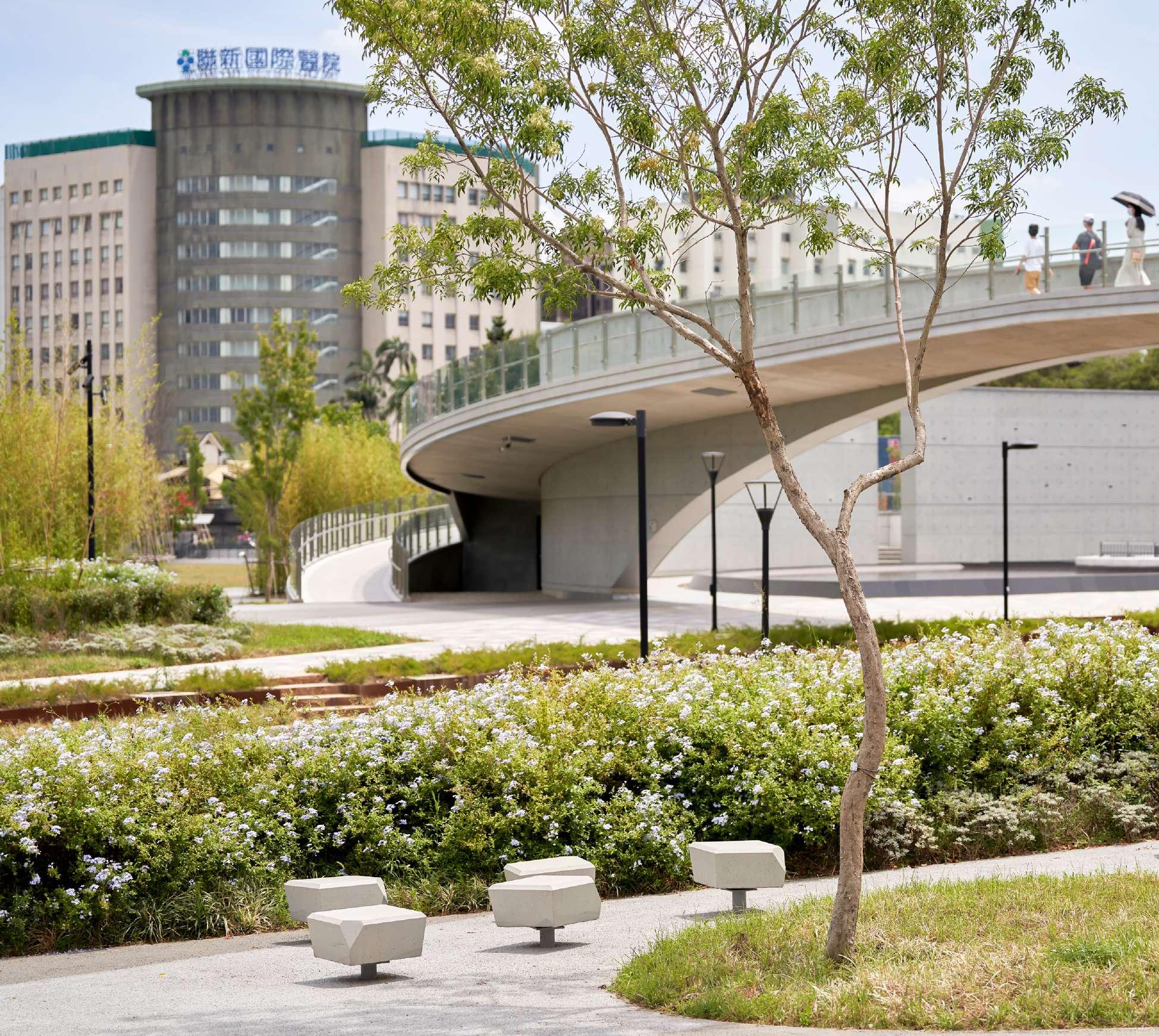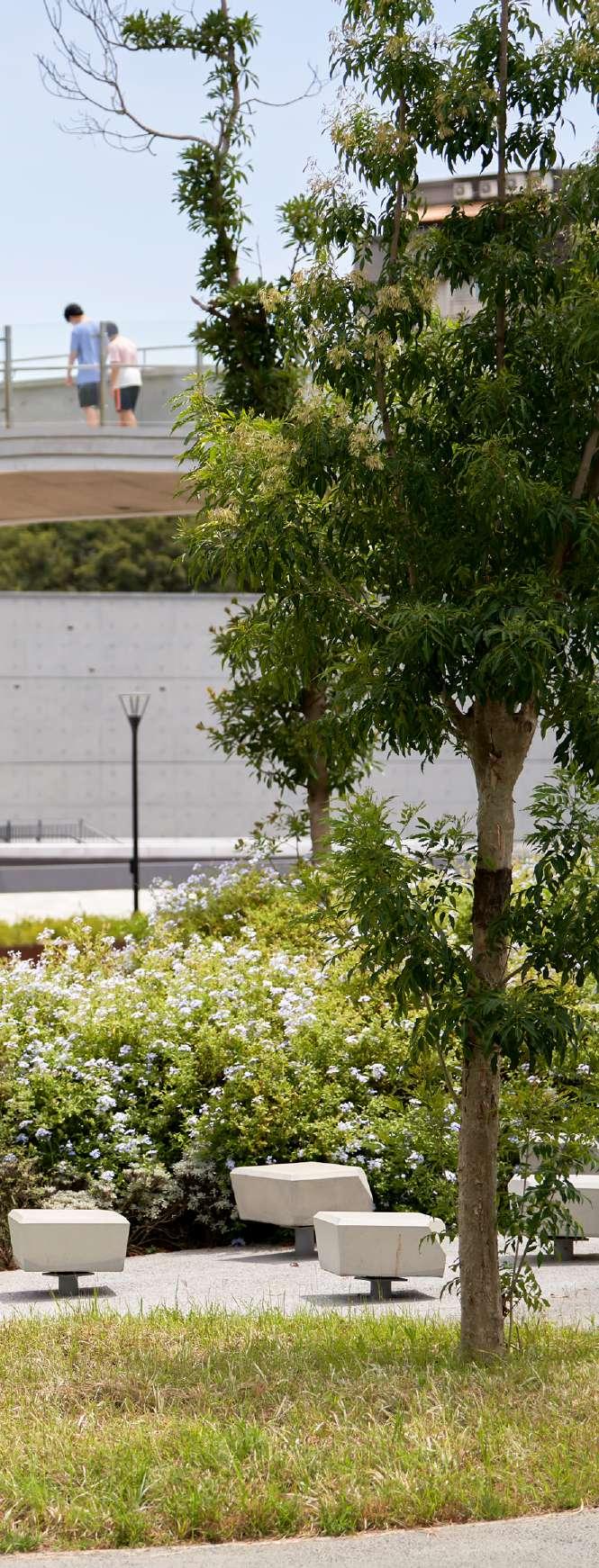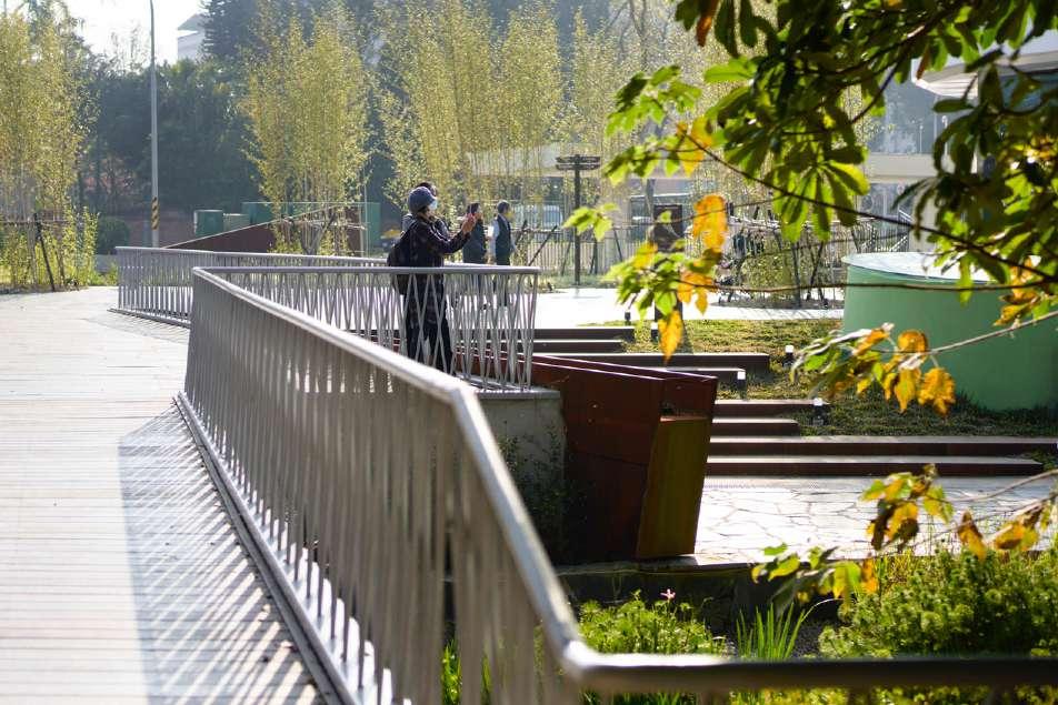 公園內運用重複的材 質語彙,使整個空 間氛圍是和諧而完整 的。