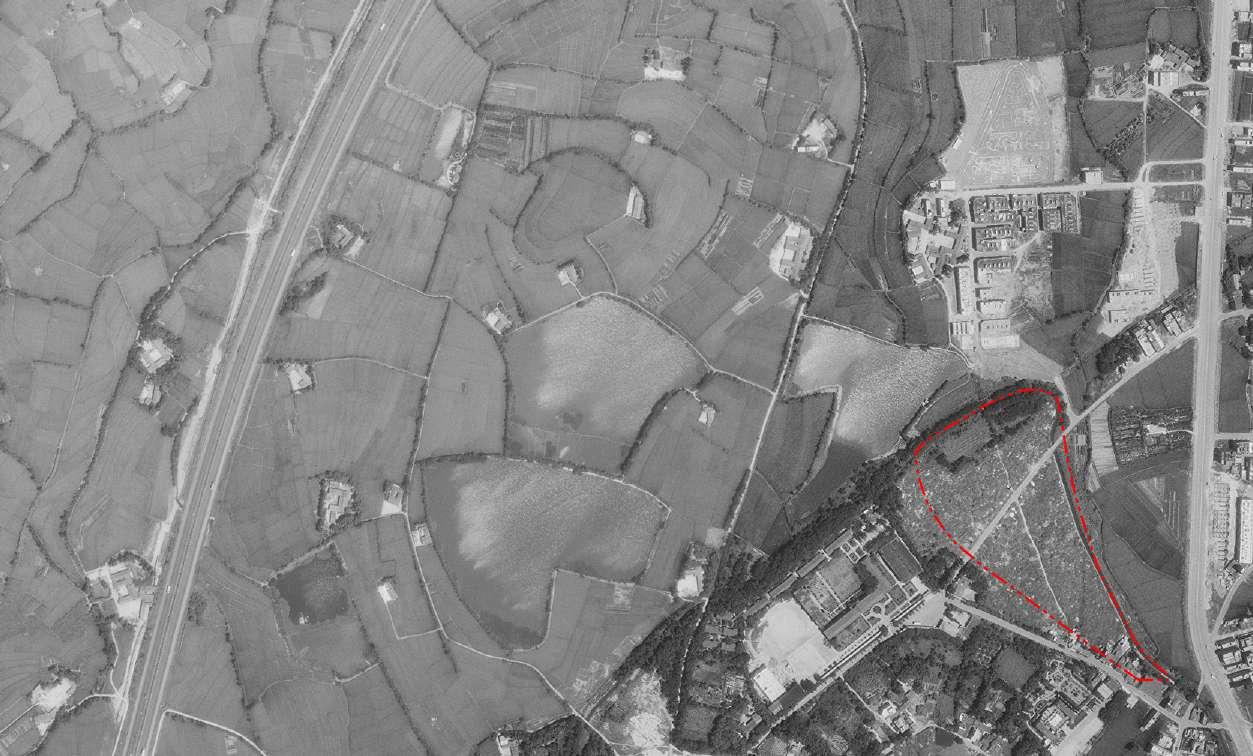 紀念公園前身被育達路切割為兩地塊,東側基地原為公墓,是大眾趨避之處;西側則是 一處小型鄰里公園。石門大圳過領分渠沿此二地塊邊緣流經,但在未經整合的環境中, 反而成為基地與周邊學校社區的區隔邊界。