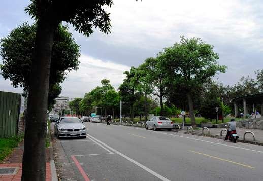 育達路在兩街廓間形成分割 高差與圍籬使得公園對公眾不友善