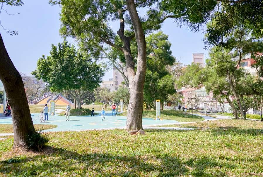 保留下來的大樹,為遊戲場嬉戲的孩子提供綠蔭, 營造好的使用環境,也傳遞季節變化的氣息。