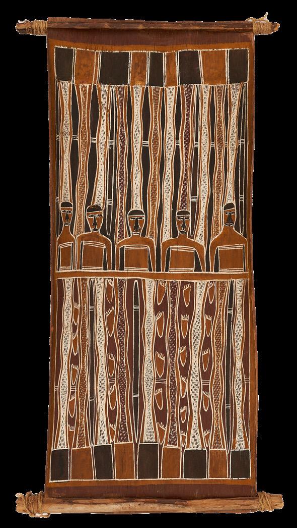 4. Yäma Munungirritj, ca. 1920–1987, Yarrwidi-Gumatj clan. Gurrungawuy, 1961. Natural pigments on bark. H. 28 x W. 15 in. (71.1 x 38.1 cm). Kluge-Ruhe Aboriginal Art Collection of the University of Virginia. Edward L. Ruhe Collection, Gift of John W. Kluge, 1997. 1993.0004.041.