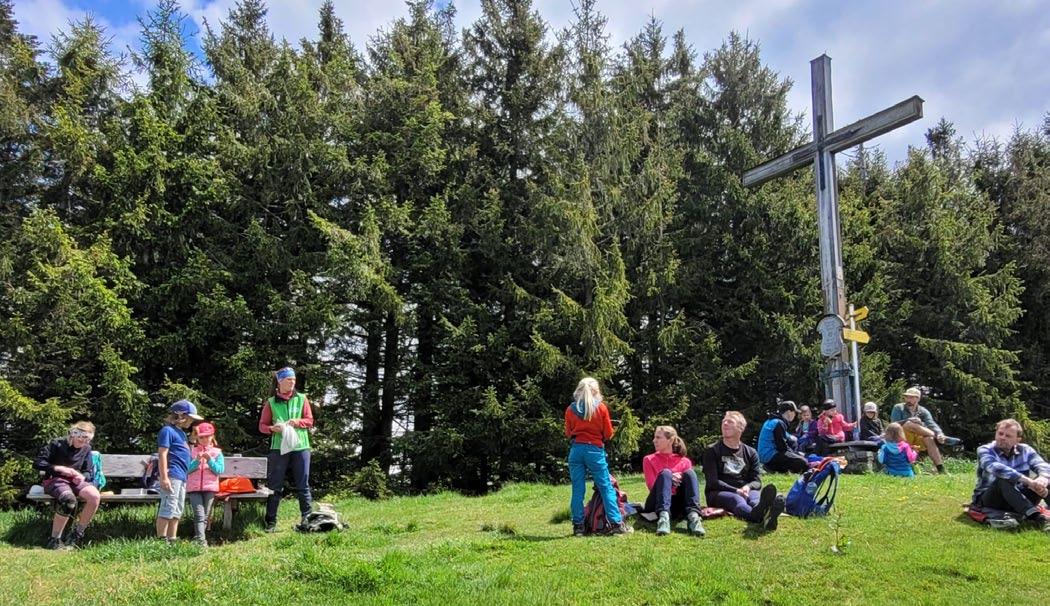 Ausgestattet mit Bestimmungsbüchern und Apps aller Art machten wir uns daher auf die Suche nach Bekanntem und Unbekanntem. Schon bald weckten auf der ersten freien Fläche die Roten Lichtnelken unsere Aufmerksamkeit. Und siehe da, hier blühen bereits die Knabenkräuter, während sie weiter unten im Wald noch etwas brauchen. Dort waren allerdings schon vereinzelt Weiße Waldvöglein zu sehen und auch der Bärlauch zeigte hier an vielen Stellen seine weiße Pracht. Es gab einige erstaunliche Funde, wie etwa die seltene Niedere Schwarzwurzel oder die Vogel-Pestwurz, eine parasitische Orchidee. Überrascht waren wir, direkt am Gipfel trotz des hier herrschenden rauen Klimas eine Felsenbirne blühen zu sehen.