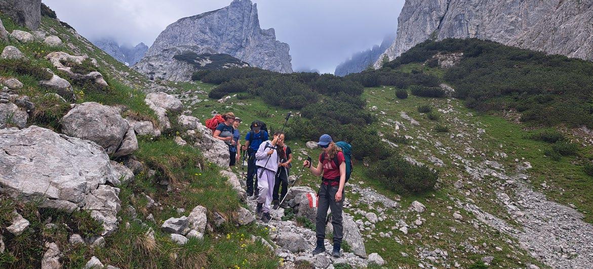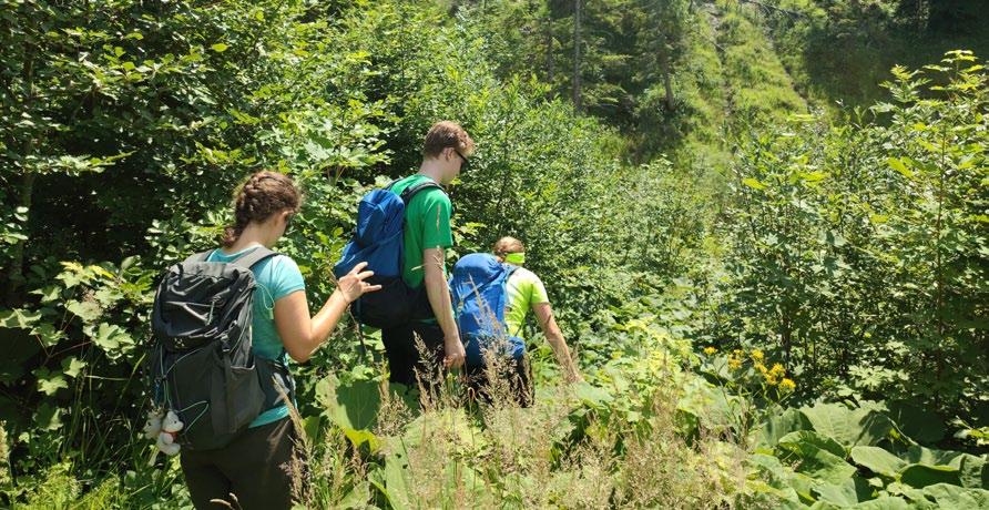 Dieses Jahr gab es mit einer naturkundlichen Wanderung, der Teilnahme an dem Seminar „Ökologie von rechts“ und der Teilnahme an einem Citizen-Science-Projekt unterschiedliche Aktivitäten. Die Wanderung führte uns im Mai auf den nahe gelegenen Rabenkopf, dabei konnten wir mithilfe von Literatur und Apps fast 40 verschiedenen Blühpflanzen finden und bestimmen. Bei dem Seminar „Ökologie von rechts“, das von der DAV-Akademie angeboten wurde, ging es um die Aneignung von Naturschutzthemen durch rechte Parteien und Bewegungen. Es wurde dabei vermittelt, welche rechten Bewegungen es aktuell gibt und welche Ideologien ihnen zugrunde liegen. In Gruppenübungen und Rollenspielen lernten wir, in welcher Form Naturschutzthemen in diese Ideologien eingebettet sein können und wie man im konkreten Fall darauf reagieren kann. Beim Citizen-Science-Projekt „Fledermäuse der Alpen“ können alle naturinteressierten Bergfreund:innen das Bayerische Landesamt für Umwelt bei der Suche nach Fledermäusen in den Alpen unterstützen. Auch wir haben uns Proberöhrchen für Kotproben zuschicken lassen und seitdem bei der Neulandhütte und diversen weiteren Hütten im Nordalpenraum gesucht – bisher leider ohne Erfolg. Aber wir bleiben dran!