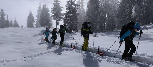 schneller unterwegs sind als die Fußgängerfraktion, die es vorzieht, die Ski an den Rucksack zu schnallen und zu Fuß abzusteigen, sagt eigentlich alles.