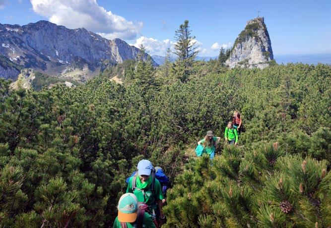 Der Plan der Gruppe 2 ist mit Bike&Hike ganz was anders. Die drei radeln zur Bergstation der Elferbahn und steigen zu Fuß noch gut 700 Hm auf den alpinen Elferturm (2499 m) – Respekt vor dieser Leistung!