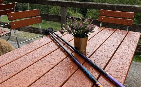 Wegen instabilem Wetter planen wir dynamisch und getrennt in zwei Gruppen. Gruppe 1 trifft unterwegs an einem Trail einen sehr netten einheimischen Bergradler. Dieser entpuppt sich als Trail-Experte; er empfiehlt die Pfarrachalm. Eineinhalb Stunden später lädt uns ebendiese Alm zur Kalorien-Aufnahme, als Regen einsetzt. Die Regenerationspause ist hilfreich für den technisch anspruchsvollen Pfad hinab ins Tal. Ob der Nässe etwas schwieriger zu fahren, mindert das aber nicht unseren Abfahrts-Spaß. Eine weitere geniale Abfahrt, herzlichen Dank für den Tipp!