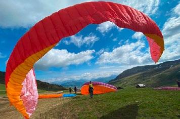 After a short theoretical briefing, you will make your first attempts with the paraglider in suitable terrain. First in flat, then in steeper terrain and soon you will be flying your first metres.