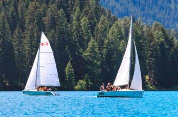 The wind is our engine. Enjoy a relaxing trip on the picturesque Lake Davos together with a skipper. On the water, all participants are allowed to steer the boat and help operate the sails.