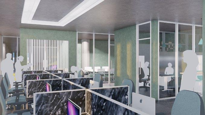 Area inimerupakan area kerja sehari-hari dan didesain minim sekatsehinggameningkatkan interaksiyangterjadi. Letaknyayangdekat denganjalur sirkulasi akan‘memaksa’terjadinya interaksiantarakaryawanyangbekerjadengan merekayangberlalulalang