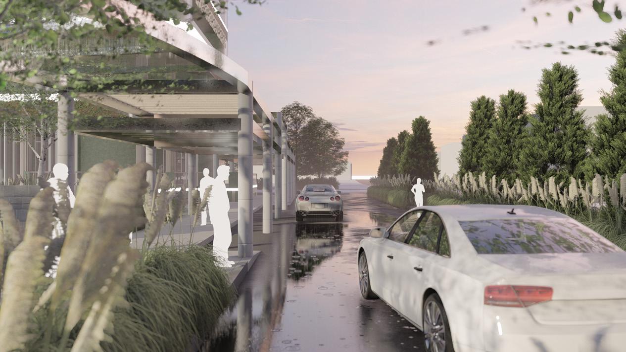 Entrancekendaraan berada pada sisi timurtapakdanberbatasanlangsung denganselasarpedestriansehingga tidakmenggangguaktivitaspadaruang interaksisosial.