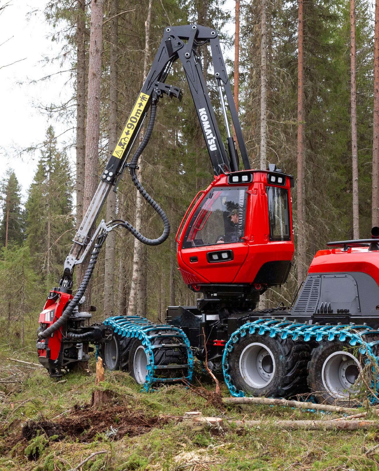 • it can process full length trees; it has 6 preselect lengths: e.g. it can cut to 3-meter lengths or longer.