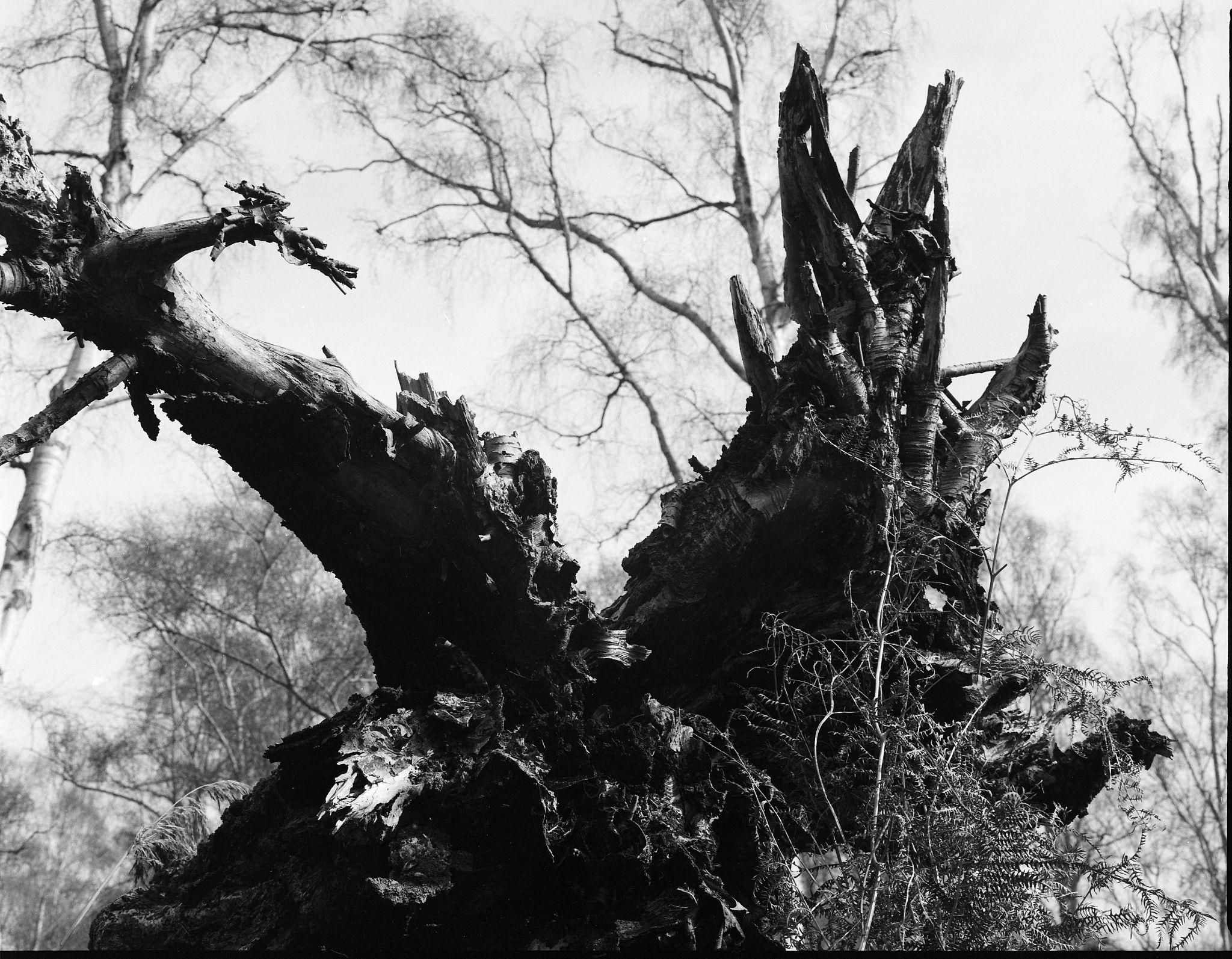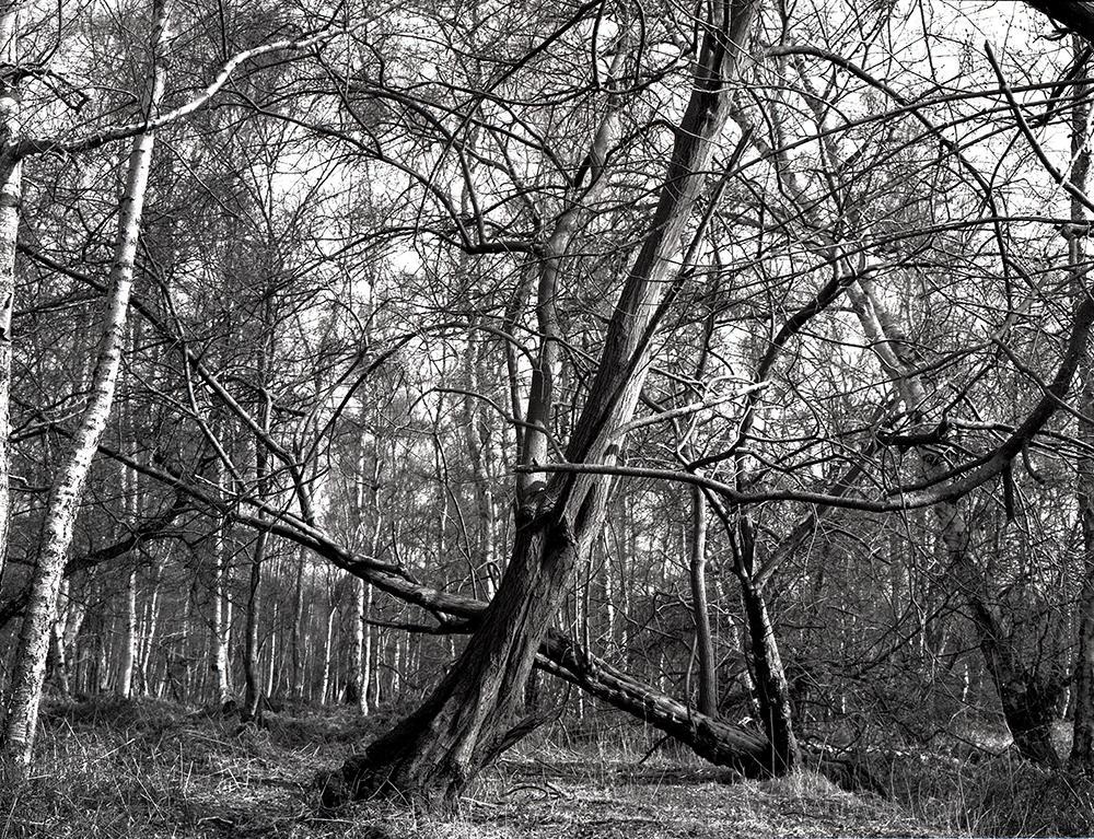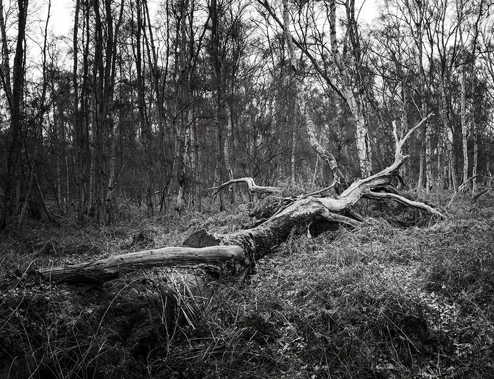 Wood - Land is a critical exploration of the catastrophic effect of draining the fens and the questions it raises. Using the abstraction of black and white medium format film photography to explore the Silver Birch woodlands of Holme Fen and surrounding land (one of the very few fragments of ancient wild fen that still exists today). When the woodland dried out it became the largest Silver Birch woodland in lowland England, it was still too wet for farming and remained as ancient natural fen. It is the lowest land point in Great Britain at 2.75 metres below sea level and sits on the edge of what once was Whittlesey Mere (the largest lake in southern England at 3 miles wide). Holme Fen is now a nature reserve, the meres have islands and shallow banks which encourage birds, dragonflies and marsh plants including over 500 types of fungi, the reserve is now a designated as a Site of Special Scientific Interest (SSSI). Wood - Land engages with the altered environment highlighting the changes that drainage of the fens has left - land shrinking and habitat destroyed. This work was created in a place where past and present collide and the future is fragile and uncertain. The intention of this work is to provoke discussion regarding the “catastrophic” change in habitat of the natural fen with its fragility and resilience. I want to evoke a sense of what is and what was, by using a methodology of repetition, revisiting of locations, showing the juxtaposition of the woodland and the agricultural land that has been formed because of the drainage.The work is not a resolved body but will in time record the future of this woodland fen and its rewilding. The photographs from this body of work is presented in a flipbook helping the viewer engage with the shifting landscape.