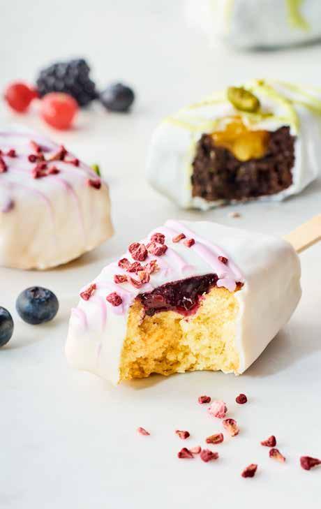 • Warm up Chocuise to 50°C and cover the Fruitcake bites.