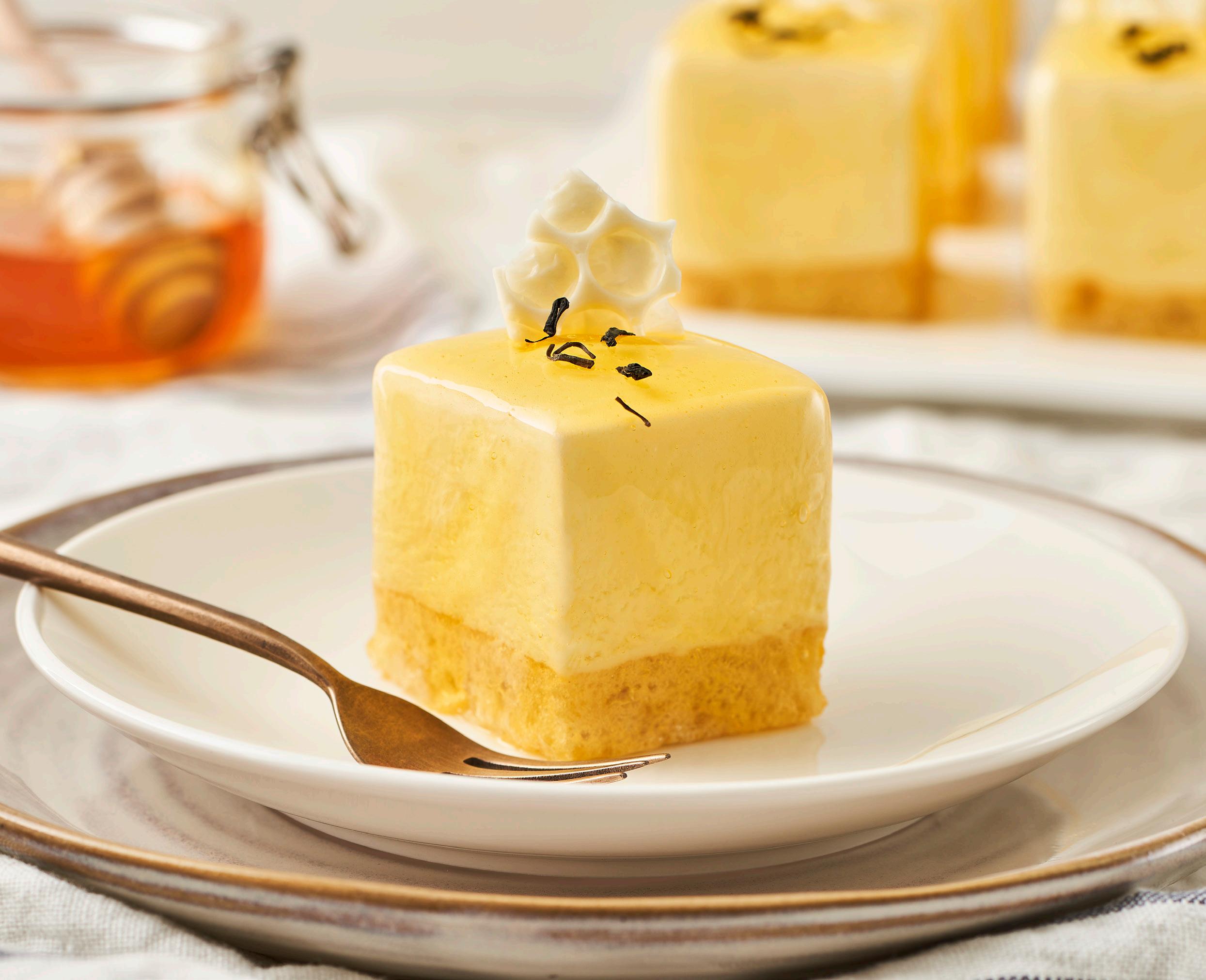 • Put jasmine sponge at the bottom of your mold, fill up with the ginger-honey mousse and freeze it.