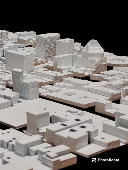Antes de empezar con el fotomontaje, analizamos los diferentes ángulos del edificio modelado para poder escoger una buena vista, una vez escogido el angulo, empezamos el fotomontaje, escogí hacer un fotomontaje a collage.