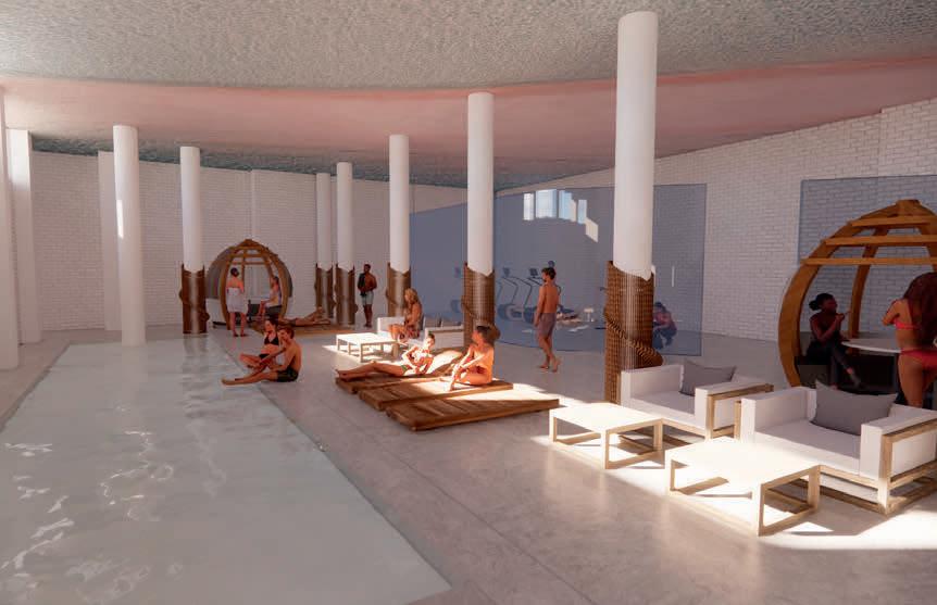 Terra is a business hotel that creates a space where individuals feel comfortable traveling to a new city. The design caters to guests by including amenities such as venues, meeting areas, a fitness room and a restaurant and bar. It helps create an easy transition from working at home to a new city. The concept is inspired by earth tones, clean lines, and sustainability. The warm materials create a contrast to the stereotypical design approach to the work environment thus enhancing the feel of a calming space.