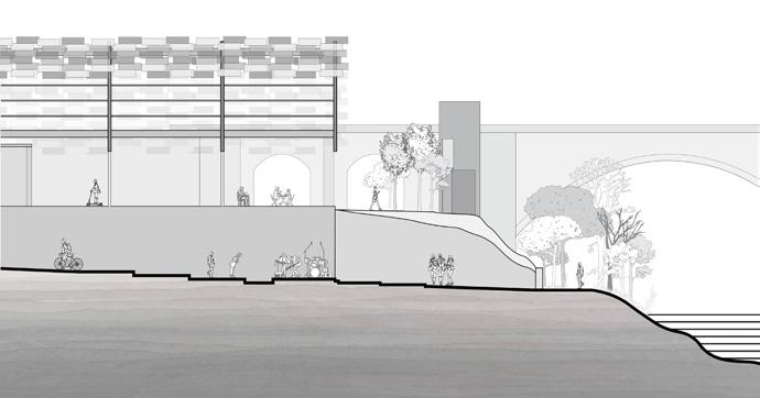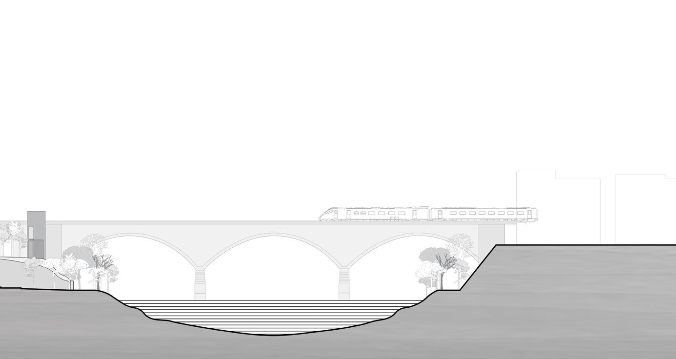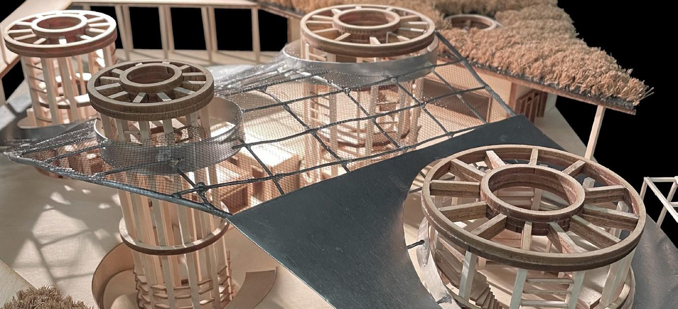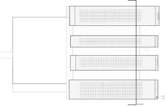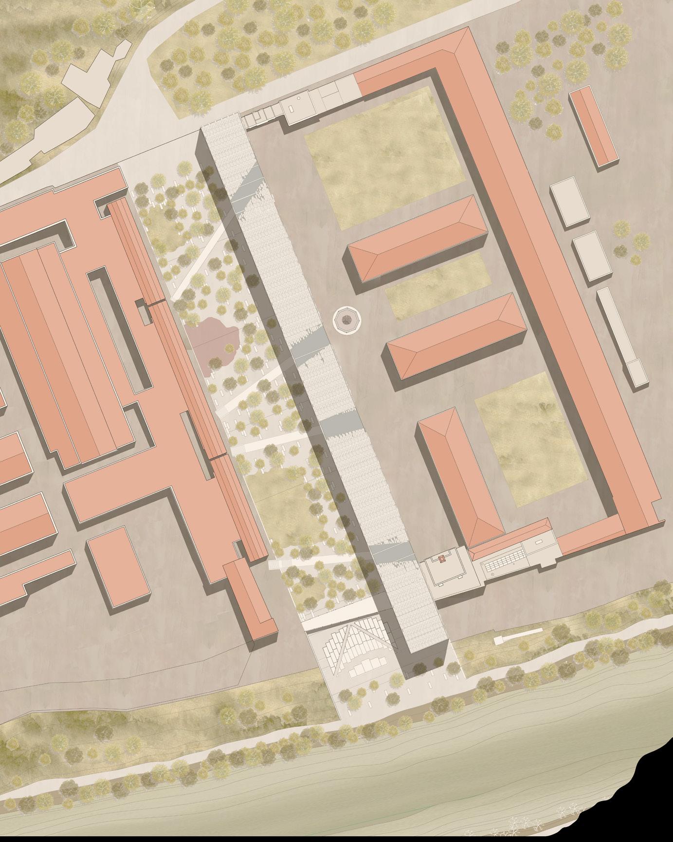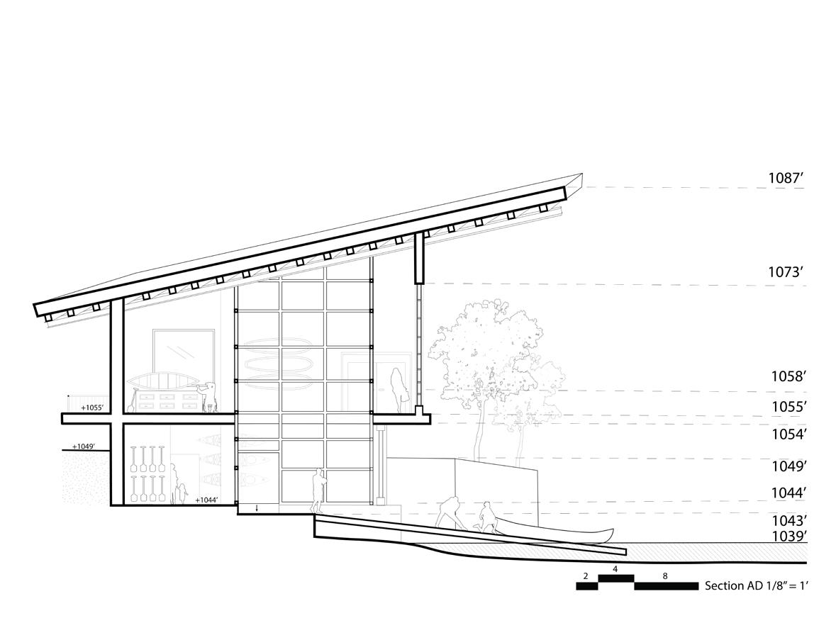 Lake Thunderbird in Norman, Oklahoma faces a large problem of erosion along the shoreline. To combat this challenge, the proposed design will feature two dominant retaining walls, which intentionally frames the natural swale of the site. This celebrates and enhances the natural drainage of the landscape, while also protecting the building from potential flooding. The boat house delicately rests on the large retaining structures, and cantilevers over the water. The structure is intended to bridge the gap between the natural dip in the landscape. The butterfly roof will carefully drain the rainwater into the swale below, creating a spectacle for guests to enjoy during the rainy season. The boat storage and launch are carved out of the retaining structure and surrounding landscape, creating a unique opportunity for the water to be welcomed into the building. The combination of ramps and cantilevers, carving and filling, creates a one-of-a-kind experience for guests to explore.