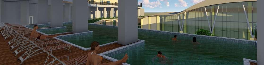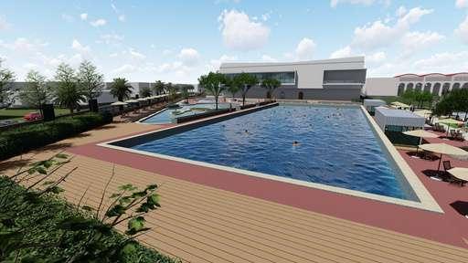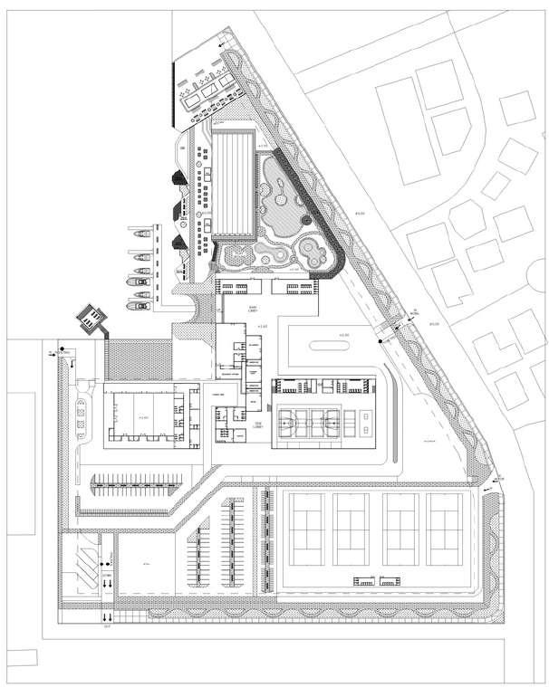 Kawasan perumahan yang dibangun oleh pengembang swasta berskala besar perlu dilengkapi dengan berbagai fasilitas umum untuk menunjang aktifitas warganya, salah satunya berupa sport center. Tantangan perancangan pada kasus kali ini yaitu membuat kawasan komersil yang dapat menjadi daya tarik masyarakat selain untuk berolah raga, juga untuk kegiatan formal dan wisata dengan berbagai sarana penunjang. Kawasan ini memiliki berbagai fasilitas diantaranya lapangan bulu tangkis indoor, lapangan basket indoor, area tenis meja indoor, sarana fitnes, sauna, kolam renang berskala olympic dan anak-anak, lapangan tenis out door, lapangan tenis outdoor, retail , serta gedung serbaguna Tantangan struktur berupa bentang lebar diterapkan pada perancangan kali ini.