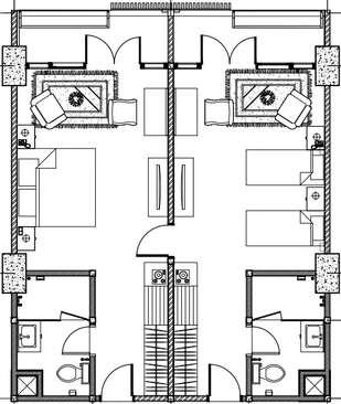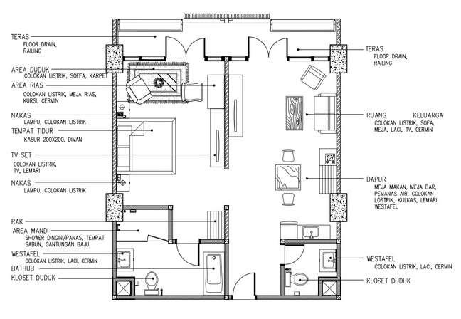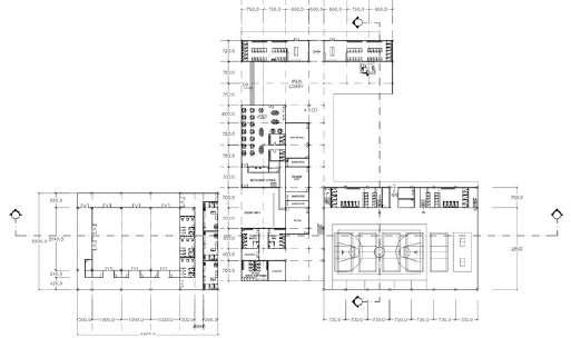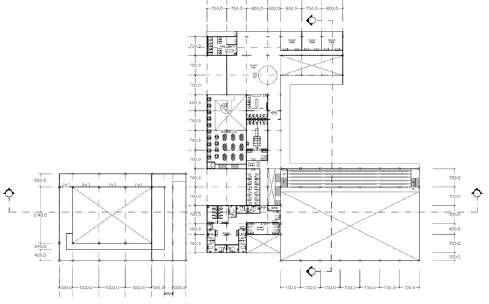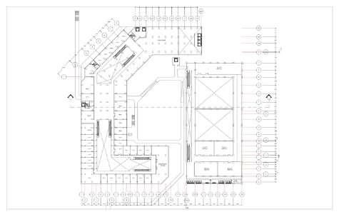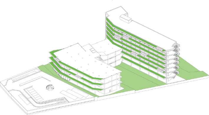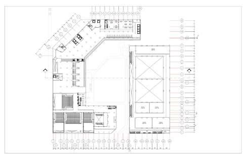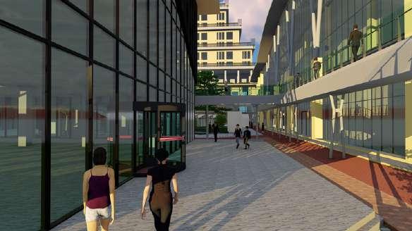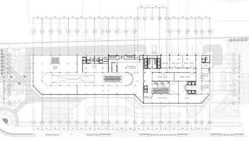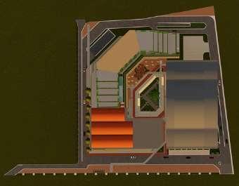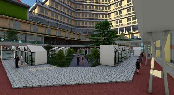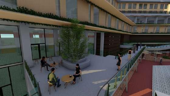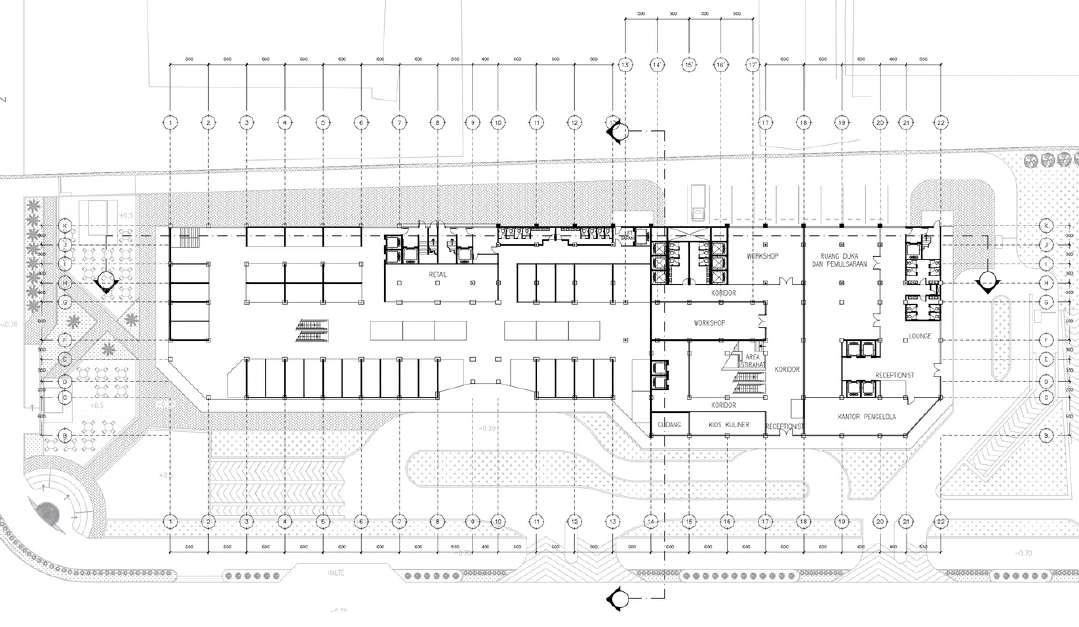 Ruang terbuka di dalam kompleks massa bangunan sebagai pengikat antar massa bangunan dan dapat dimanfaatkan sebagai pusat pergerakan aksis. Aksis tersebut menjadi pemandu dan pengikat massamassa bangunan.