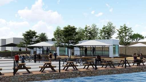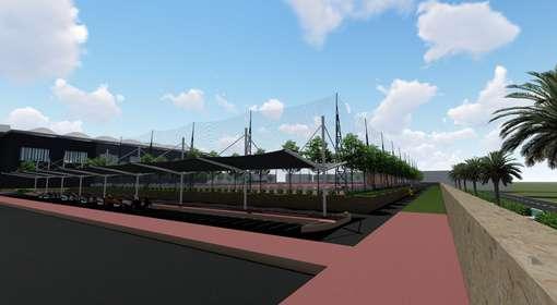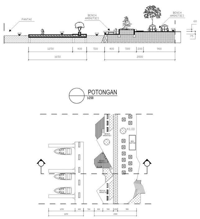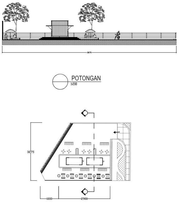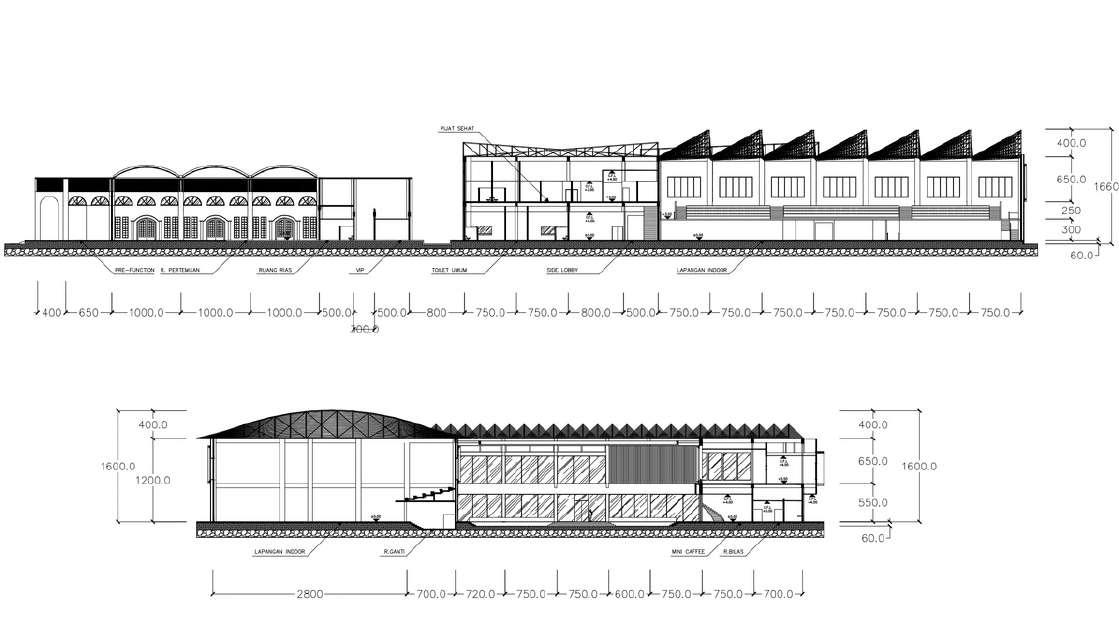 Gedung Serba Guna diarahkan menuju view pantai dengan bukaan yang lebar