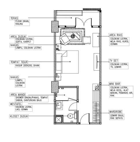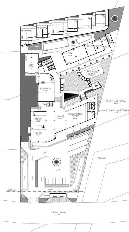 lahan berkontur. Adapun fasilitas dalam Hotel resort dan villa ini adalah 4 tipe unit kamar hotel dan 2 tipe villa dengan sarana penunjang