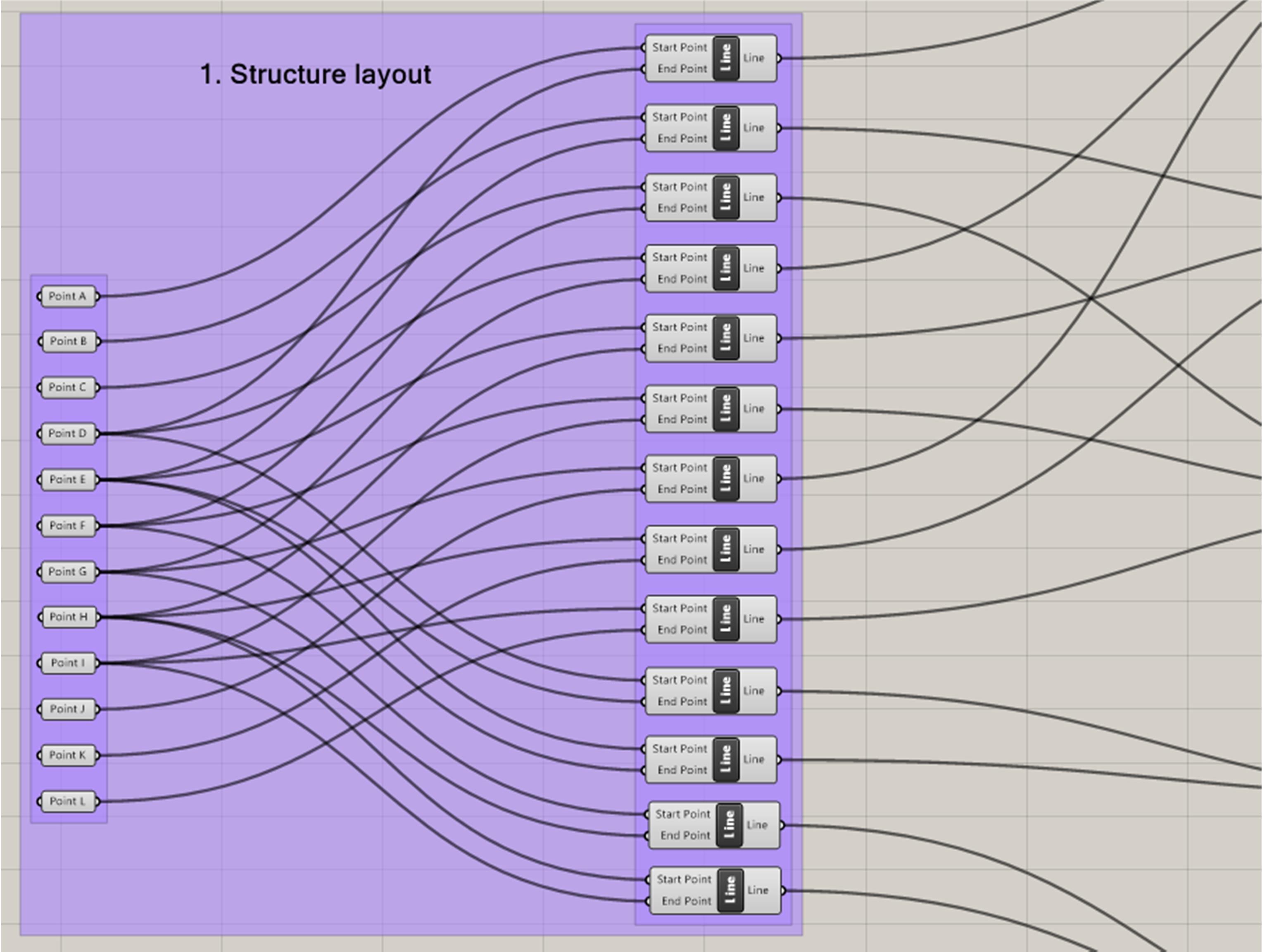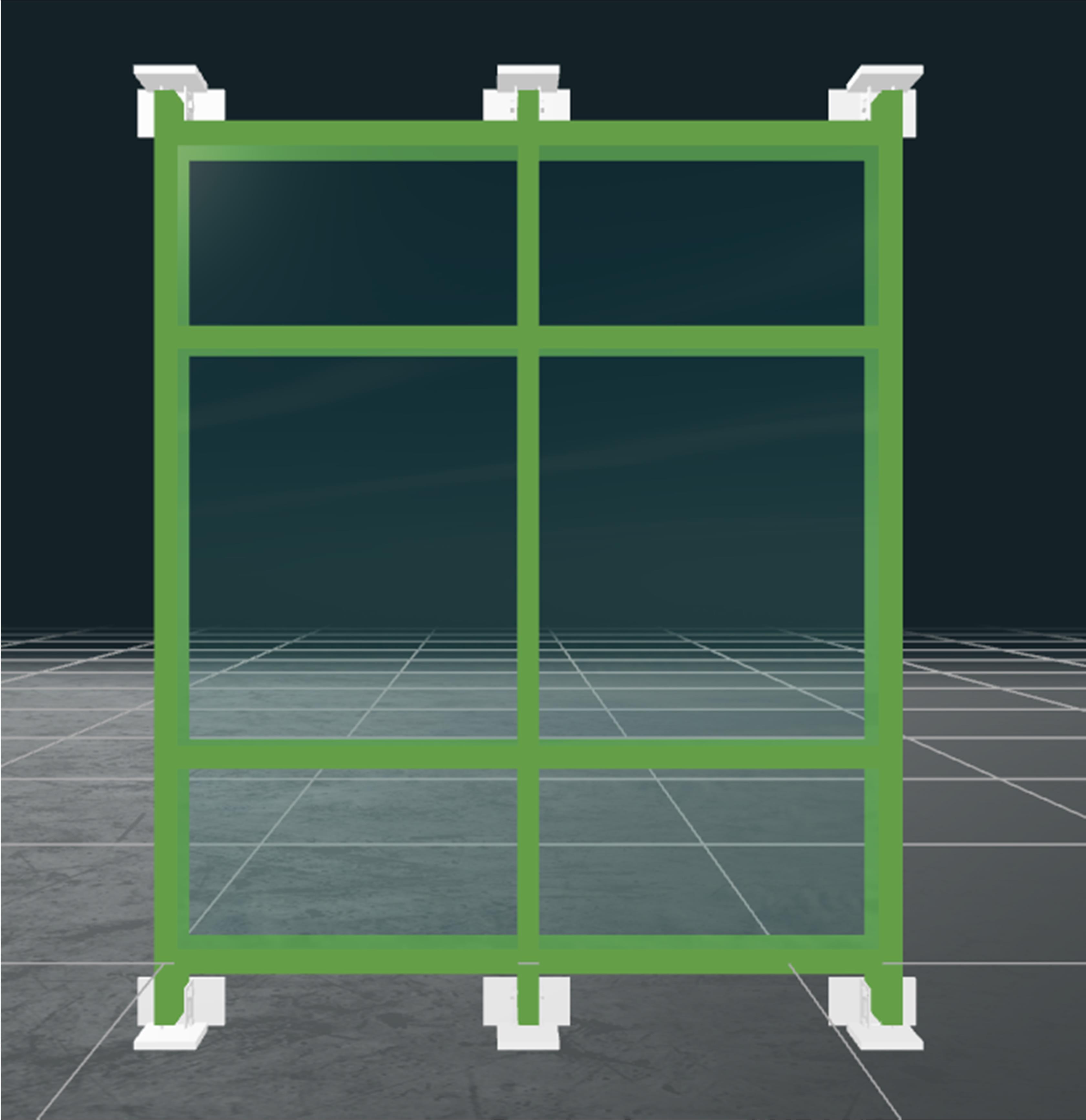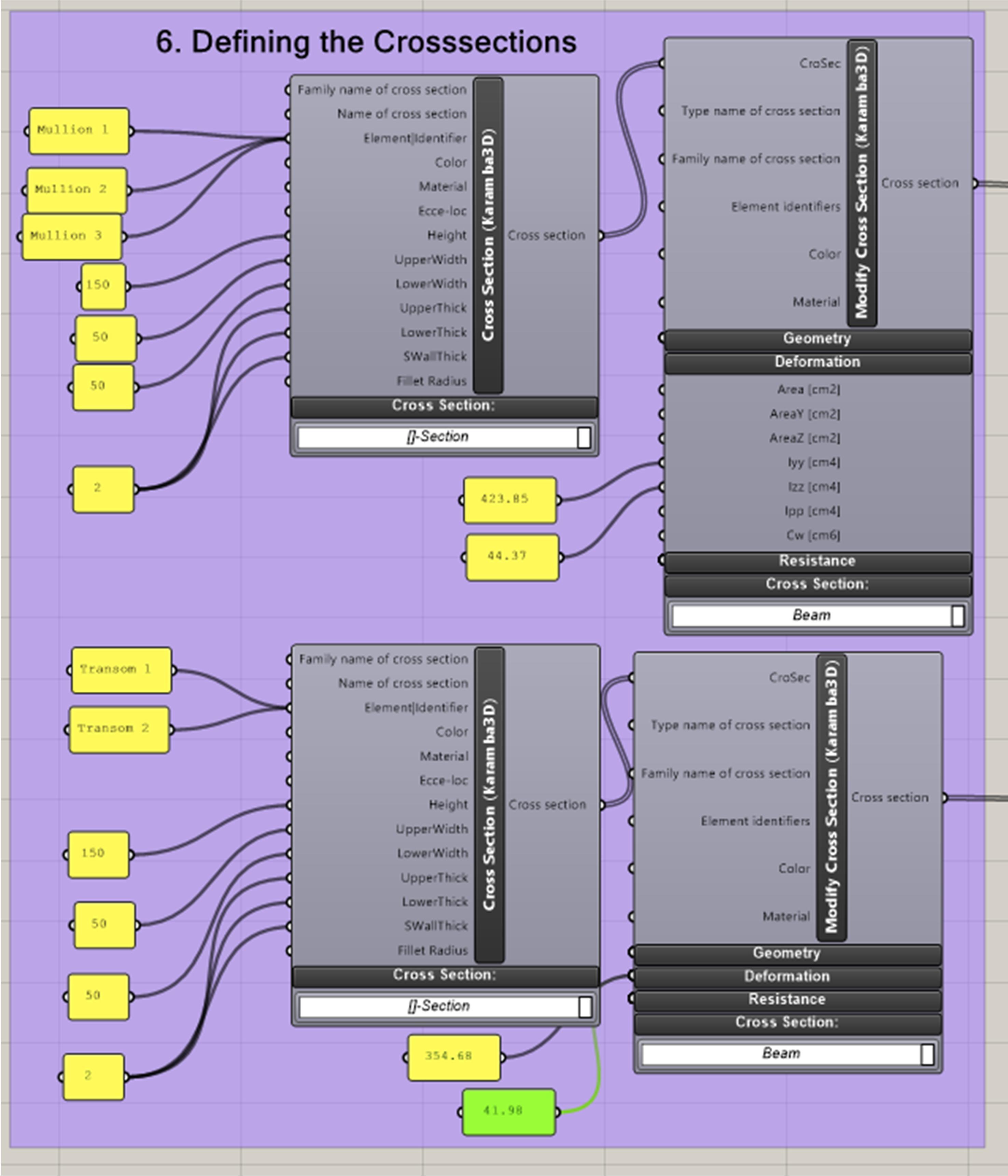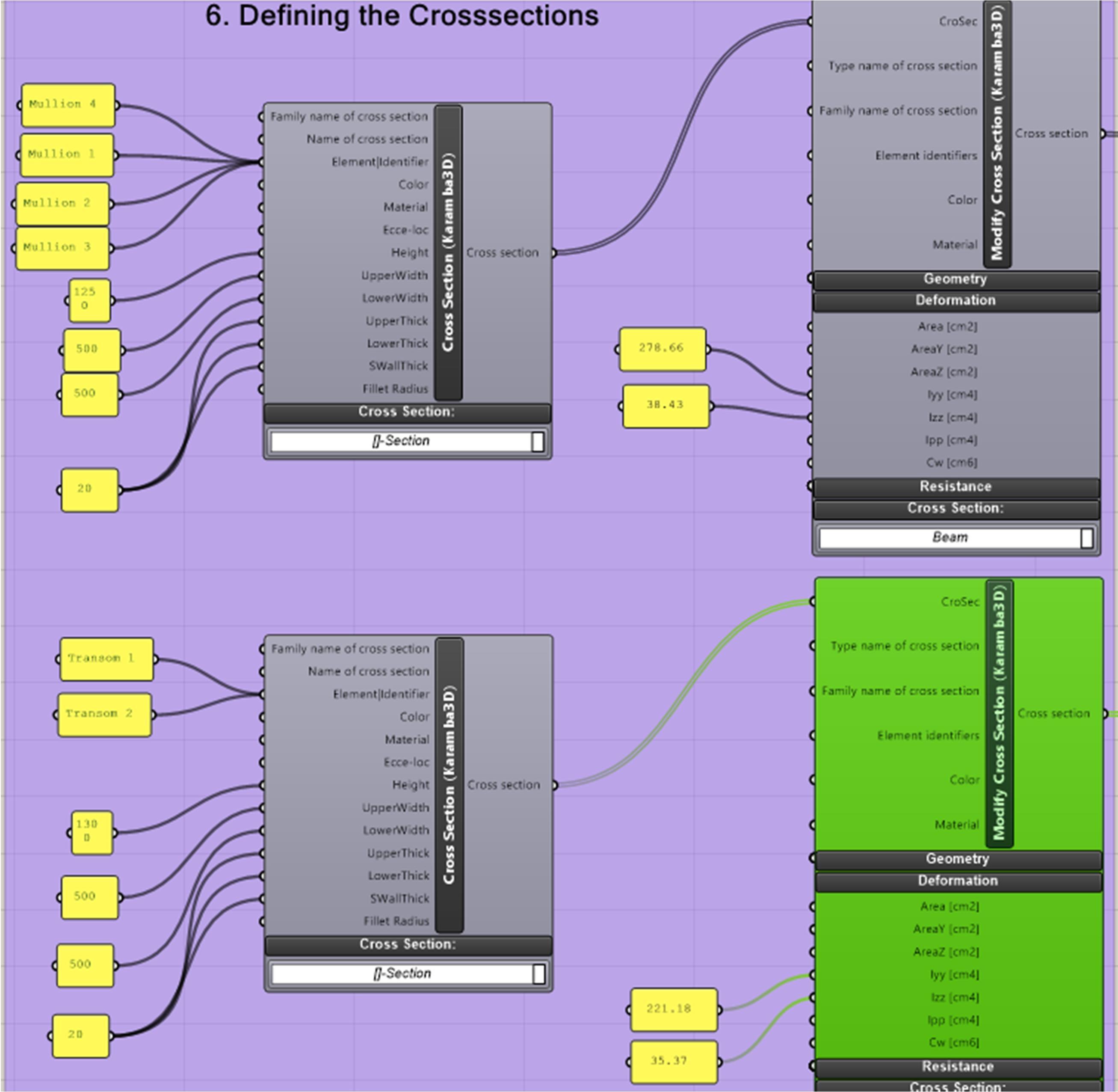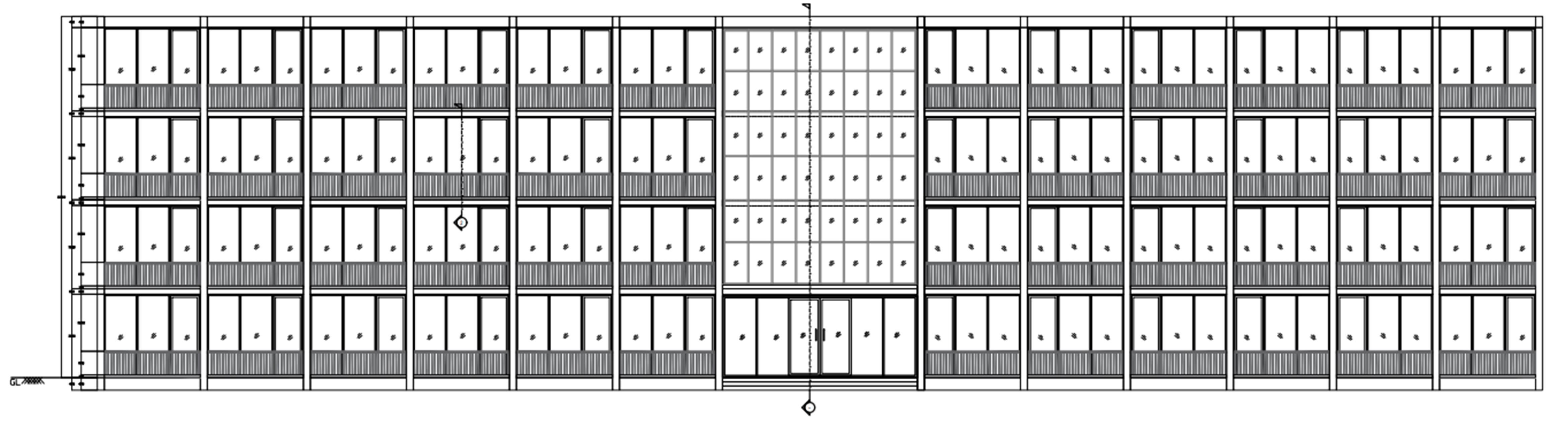 mull1 = rs.CopyObject(mull, [(length_transom+0.05)*i,0,0]) mullions.append(mull1) for j in range(0, 16):
