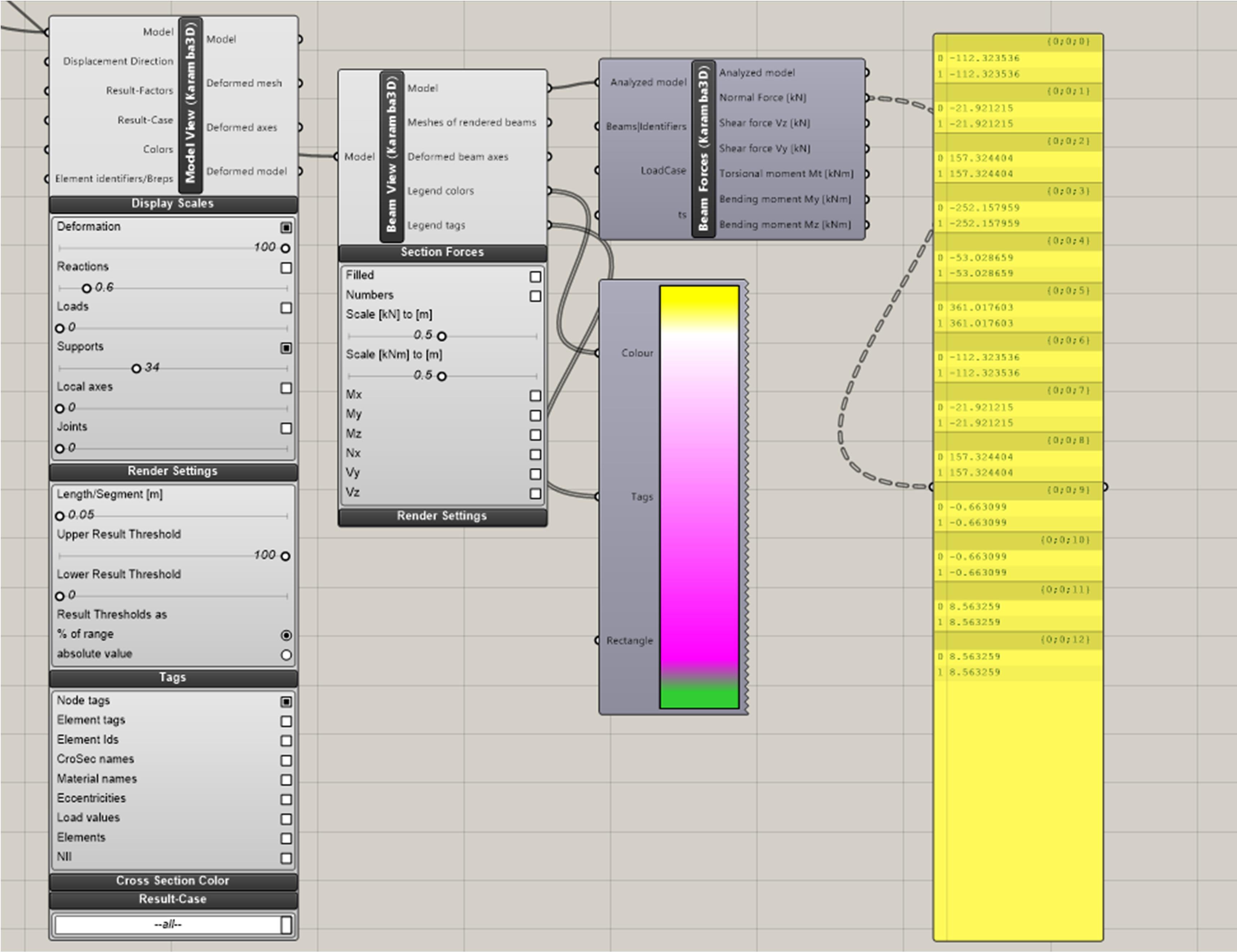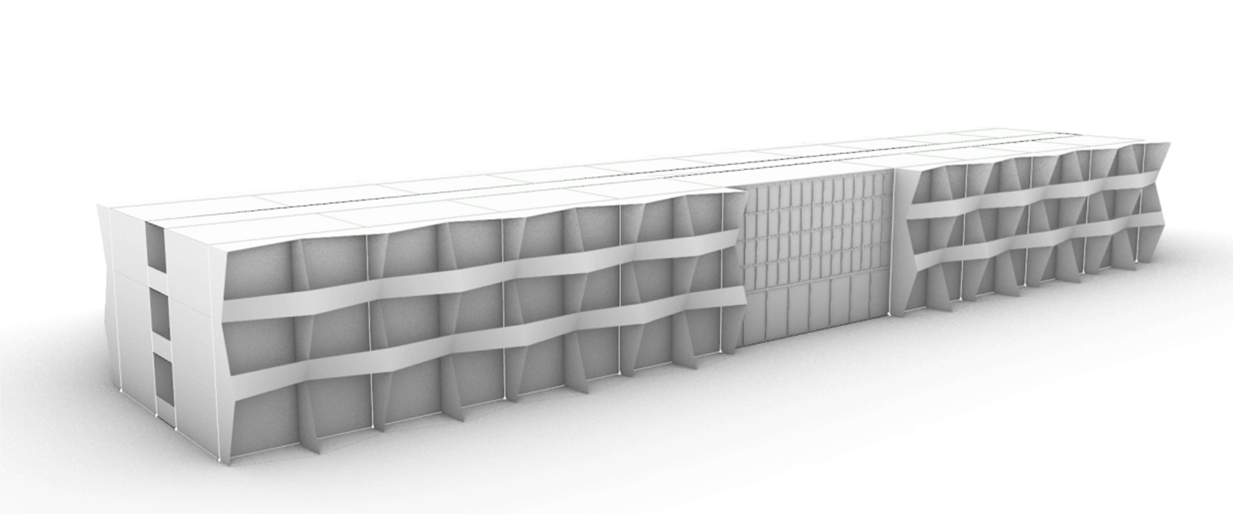 # Create the facade at the origin for one level def create_facade(curvelenght): curvelenght = curvelenght if curvelenght < 10: length_transom = (curvelenght-0.45)/8 mullions = [] transoms = [] plane = rs.WorldXYPlane() plane = rs.MovePlane(plane, [0,0,3]) mull = rs.AddRectangle(plane, 0.05, 0.11) mull = rs.ExtrudeCurveStraight(mull, [0,0,0], [0,0,1.5]) rs.CapPlanarHoles(mull) mullions.append(mull) plane = rs.MovePlane(plane,(0.05,0,3)) transom = rs.AddRectangle(plane, float(length_transom), 0.11) transom = rs.ExtrudeCurveStraight(transom, [0,0,0], [0,0,0.05])