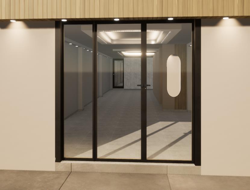 Respecto a la iluminación se propone colocar dos cielos rasos con luces led y dicroicos tanto en los laterales como en el ingreso.