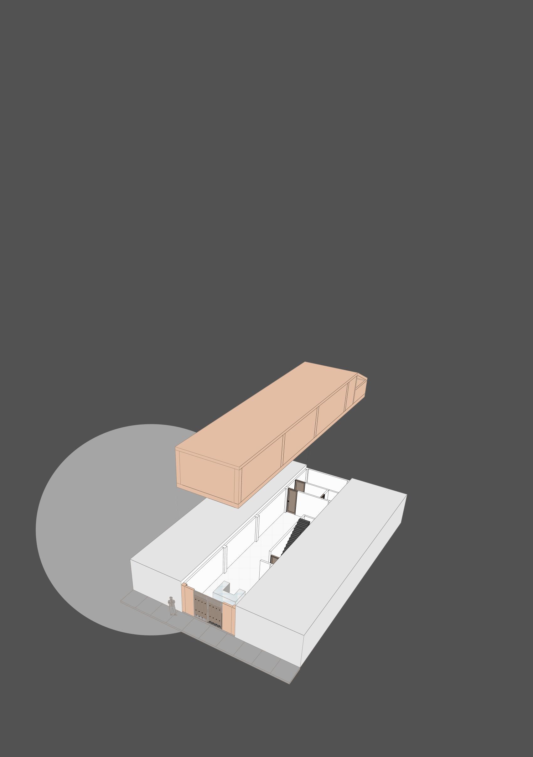 El grafico de 3D desfasado muestra los 2 niveles del local en su situación actual.