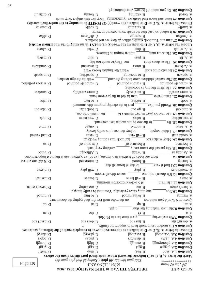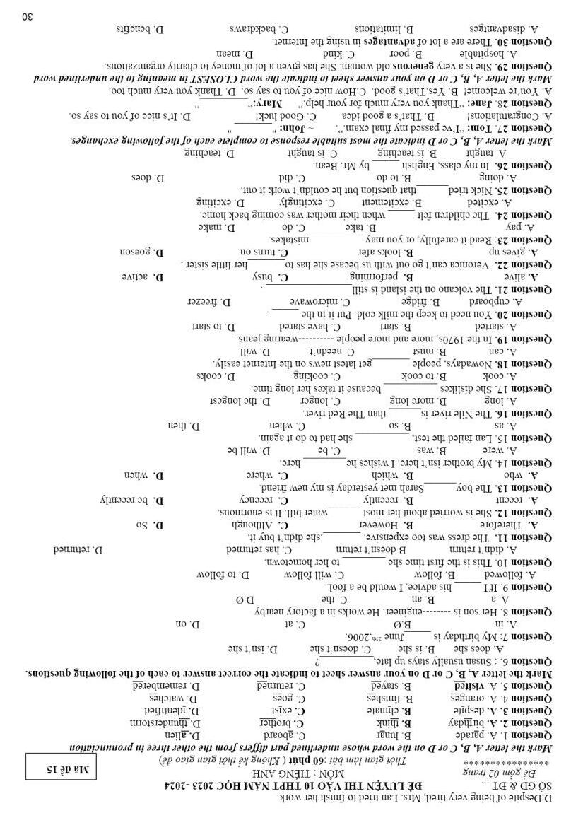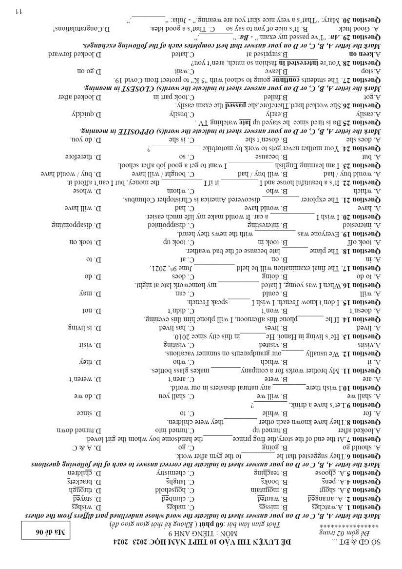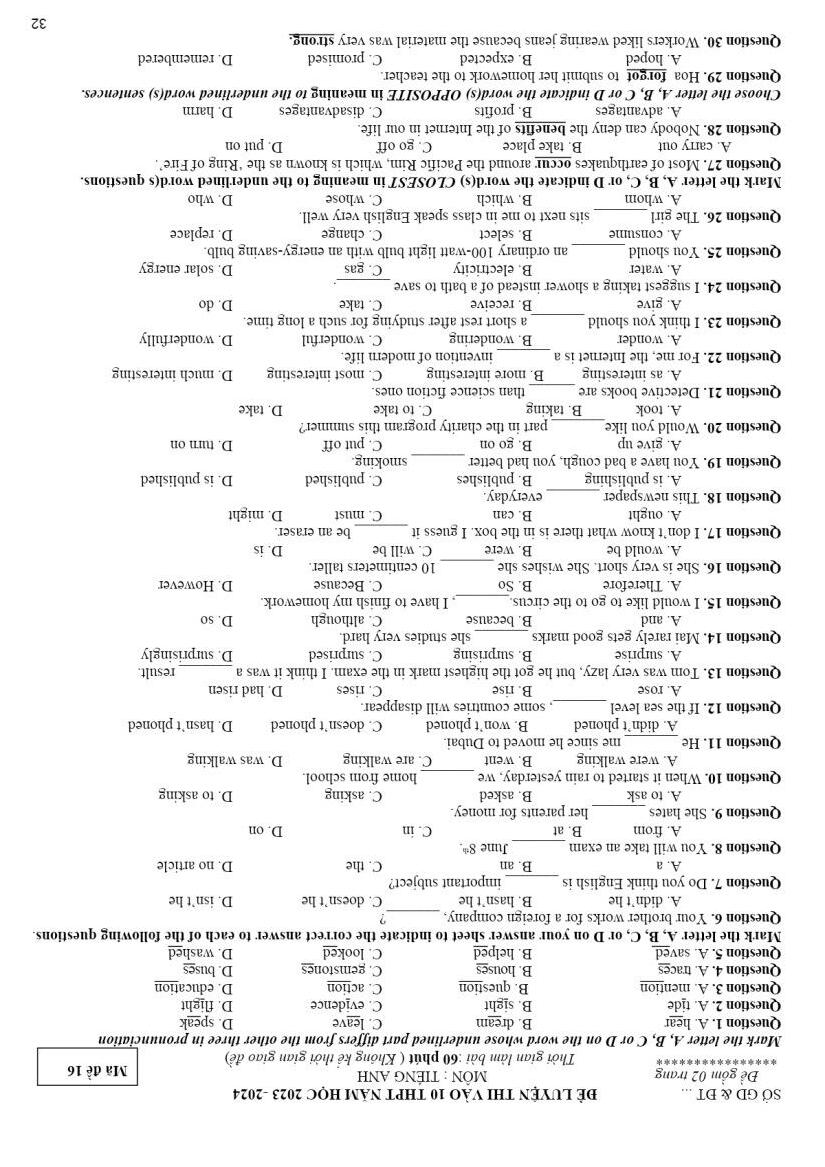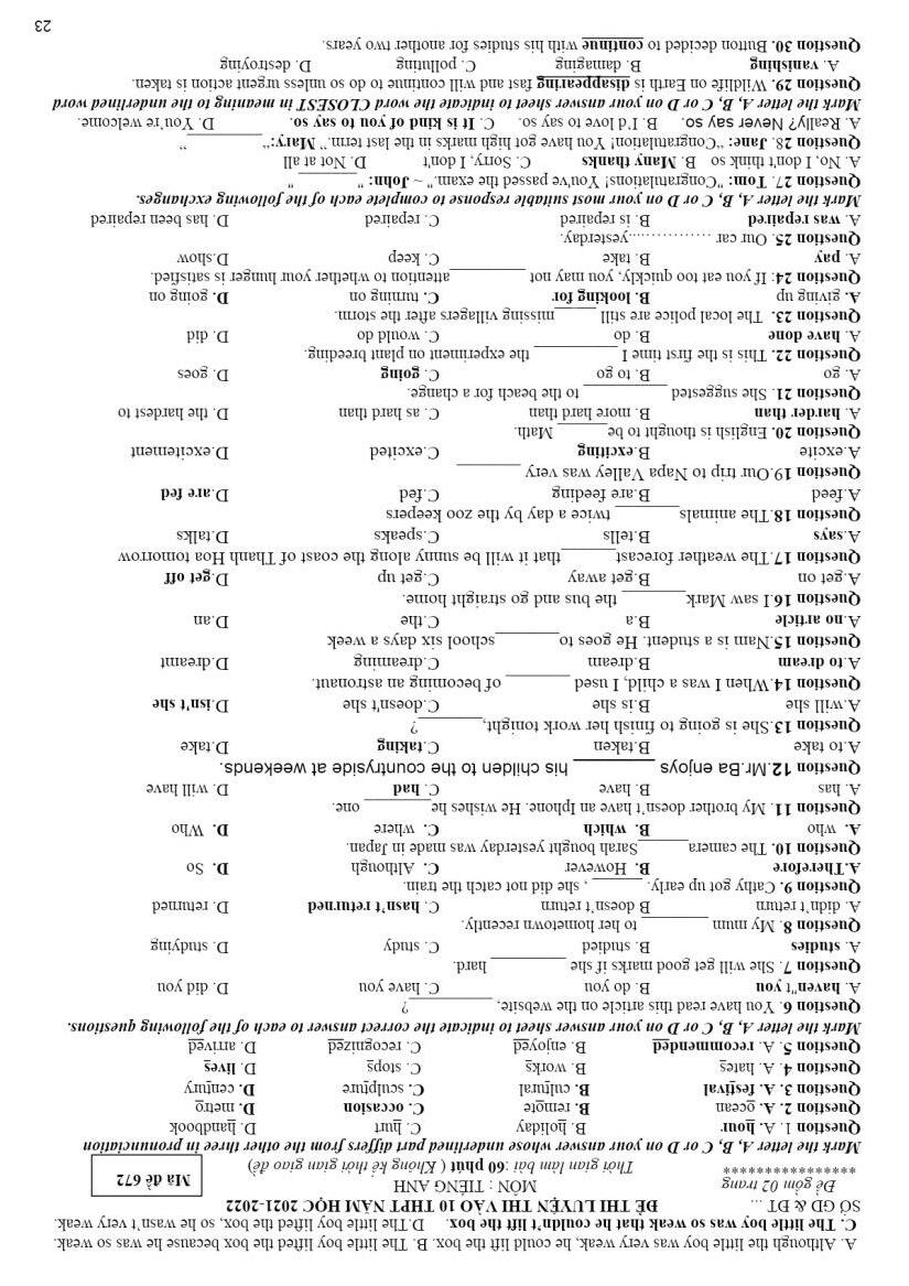 Hướng dẫn ôn tập thi vào lớp 10 môn Tiếng Anh - 2 bản HS và GV gồm 46 đề ôn thi tuyển sinh vào 10