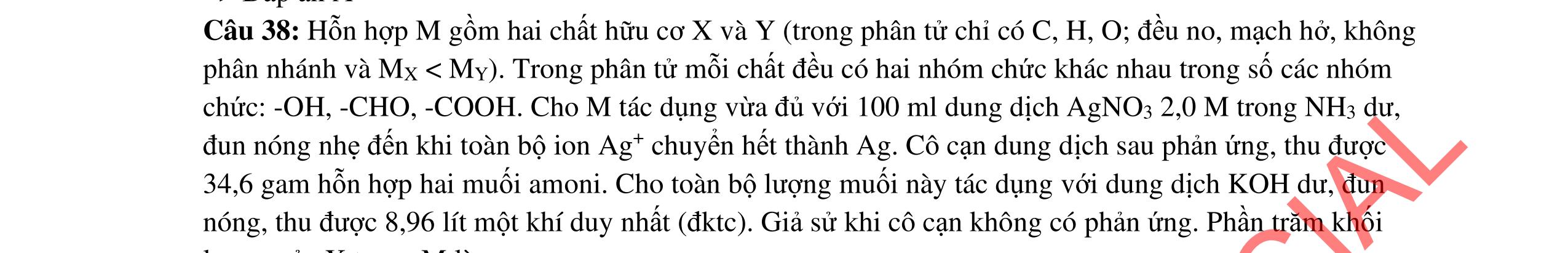 Cho NTK các nguyên tố: H= 1; He = 4; C = 12; N = 14; 0= 16; Na = 23; Mg = 24; Al = 27; S = 32; K = 39; Ca = 40; Fe = 56; Cu = 64; Zn = 65; Ag = 108