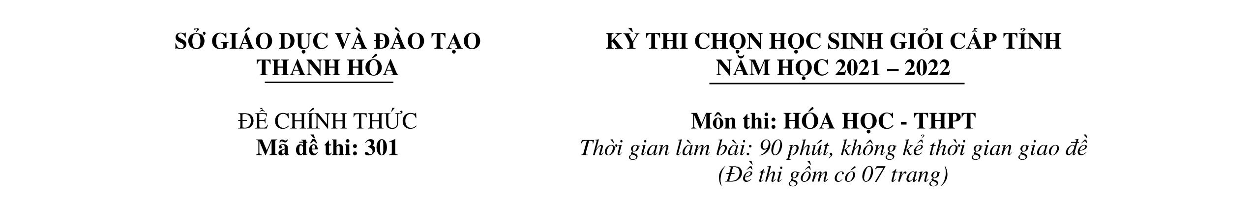 Môn thi: HÓA HỌC Thời gian làm bài: 180 phút Ngày thi: 22/02/2022 (Đề thi có: 02 trang)