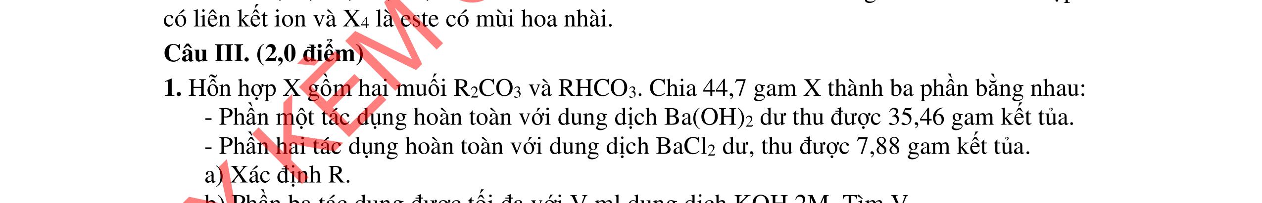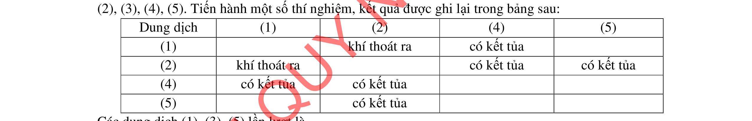 1.1. Có 5 ống nghiệm, mỗi ống nghiệm chứa 1 trong các dụng dịch sau: NaHSO4; Ba(HCO3)2; Ba(OH)2; KHCO3, Na2SO4. Người ta đánh số ngẫu nhiên từng ống nghiệm là X1, X2, X3, X4, Xs và tiến hành thí nghiệm cho kết quả như sau: