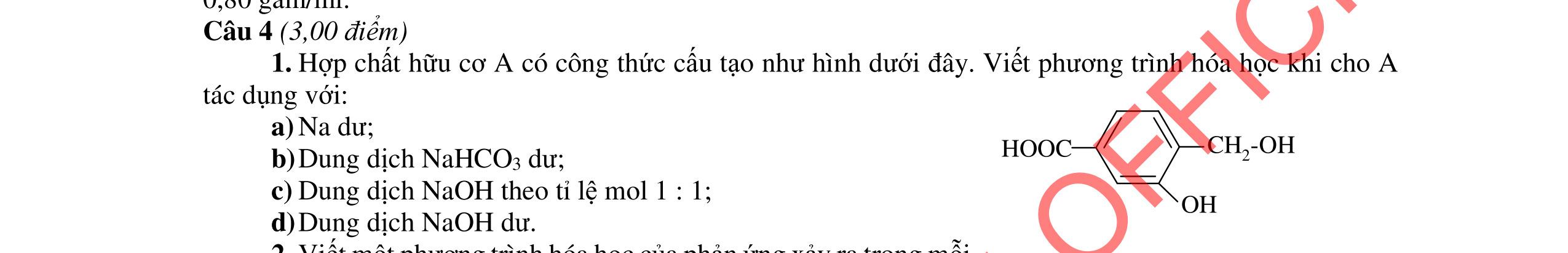 Thí sinh được dùng bảng tuần hoàn các nguyên tố hóa học. Câu 1 (4 điểm).