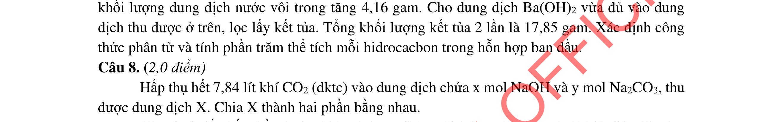 1 Viết các phản ứng: CO2 + 2OH → HCO3 HCO3 - + 2OH → CO3 2- + H2O CO3 2- + Ba2+ → BaCO3 Tính ra m= 9,85 g