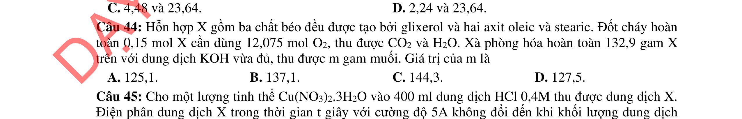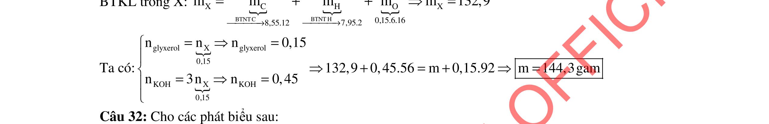 u thấy chất béo tan dần tạo dung dịch màu trắng| 0,25 sữa, có một ít xà phòng kết tinh màu trắng nổi lên. 0,25 - Sau khi thêm NaCl thì sự phân lớp rõ rệt hơn, chất rắn nổi lên nhiều hơn 0,25 - Vai trò của dung dịch NaCl bão hòa là tăng khối lượng riêng của dung 0,25 DẠYKÈMQUYNHƠNOFFICIAL