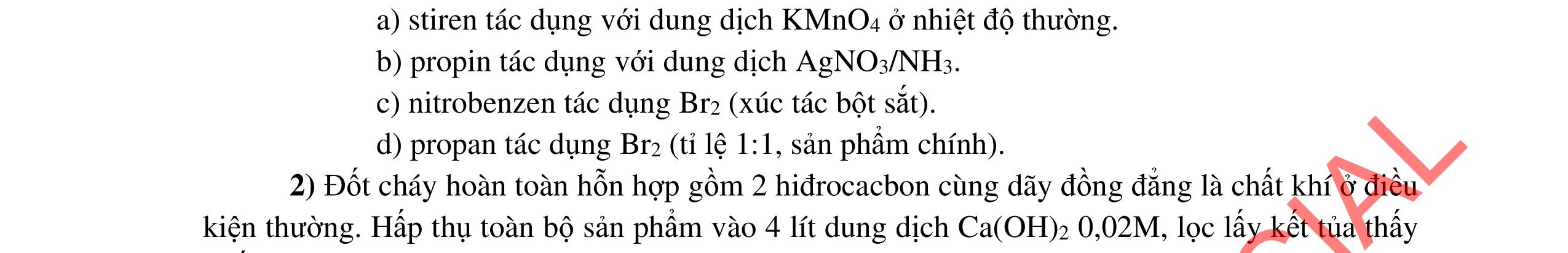 Do nCH2=CH-COOH > nCH2 ⇒ chỉ ghép CH2 vào axit Phản ứng vừa đủ ⇒ nOH- = nCH2=CH-COOH = 0,05 mol ⇒ nKOH = 0,0125 mol; nNaOH = 0,0375 mol Vậy: m = 0,05 ×71 + 0,02 ×14 + 0,0125×39 + 0,0375×23 = 5,18 gam ồ