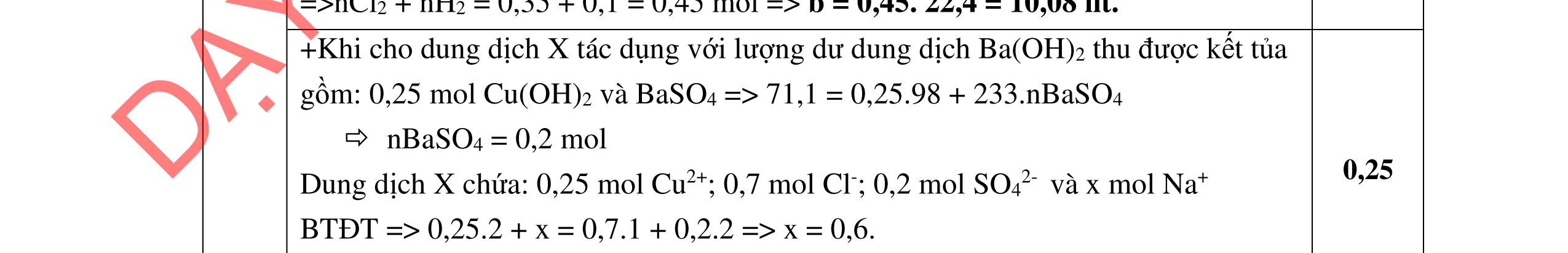 Ba2+ + SO4 2- → BaSO4 0,25 Ba2+ + 2HSO4 + 2OH → BaSO4 + SO4 2 + 2H2O 0,25 1.2. 2,0 đ