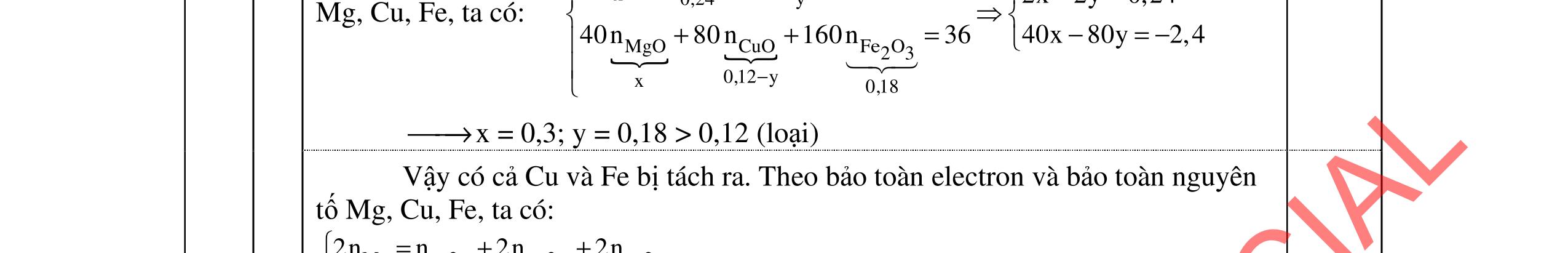 Oxit gồm MgO và Fe2O3. 24x + 56y = 14,8 (1) 64(x+z) + 56(y-z) = 21,6 (2) 40x + 160.z/2 = 14 (3) 0,5