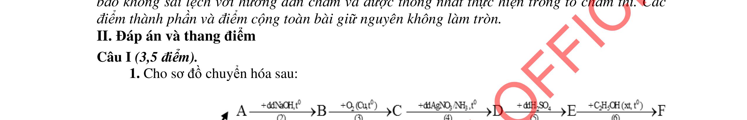 HƯỚNG DẪN CHẤM Môn thi: HÓA HỌC - THPT A. Hướng dẫn chung Hướng dẫn chấm chỉ xác định những yêu cầu và mức điểm cơ bản, giám khảo cân nhắc từng trường hợp cụ thể để lượng hóa điểm một cách chính xác. Thí sinh làm bài theo cách khác mà đúng vẫn được điểm tối đa. B. Đáp án và thang điểm
