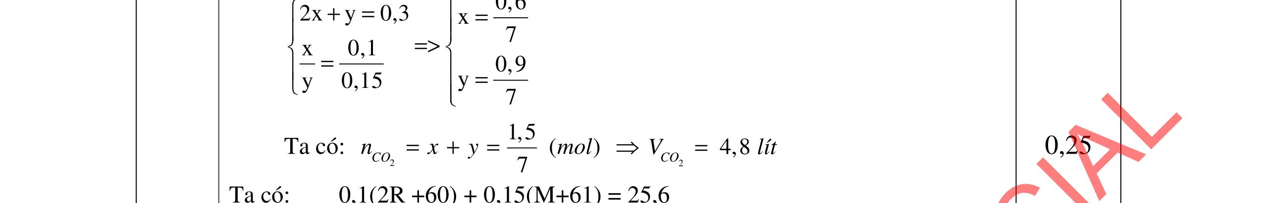 Từ (1,2) => x = 1,26 và y = 0,8 mol 0,25