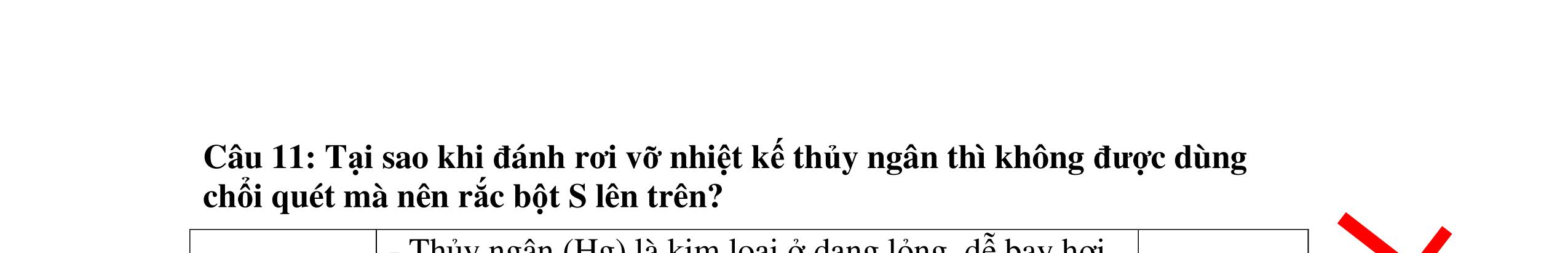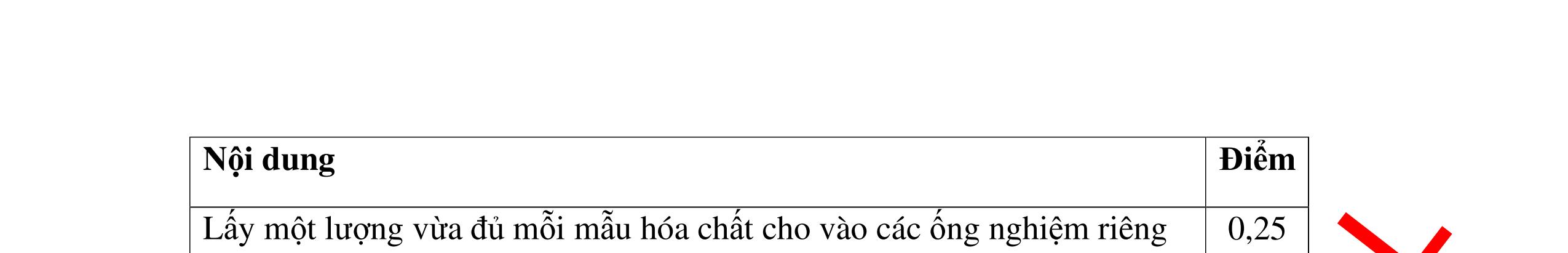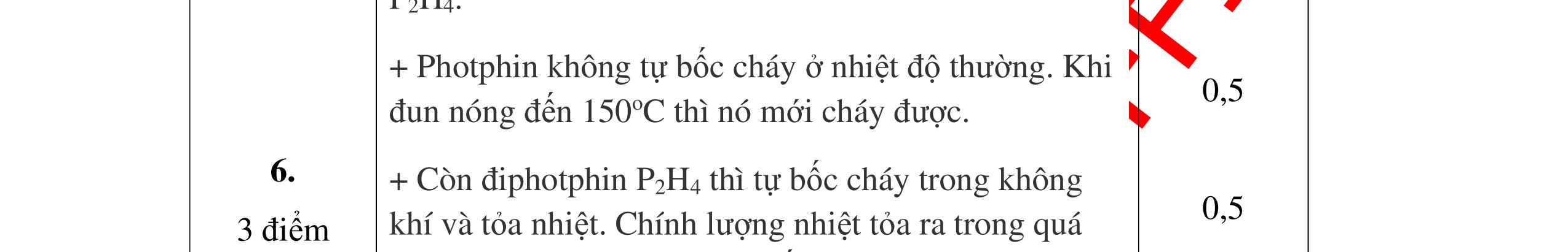 DẠYKÈMQUYNHƠNOFFICIAL - PTHH: 2Na + 2H2O → 2NaOH + H2 - Giải thích: Do Na phản ứng rất mạnh với nước tạo dung dịch bazơ làm phenolphtalein chuyển hồng, phản ứng giải phóng khí H2 0,5 0,5 Câu 11: Nêu hiện tượng, viết PTHH và giải thích khi: Rót từ từ nước cất vào mẩu nhỏ vôi sống CaO, sau đó nhỏ thêm 1-2 giọt dung dịch phenolphtalein? 11. 2 điểm - Hiện tượng: + Mẩu vôi nhão ra và tan dần, phản ứng tỏa nhiều nhiệt + Dung dịch làm đổi màu quỳ tím thành màu xanh (nếu dùng phenolphtalein thì chuyển thành màu đỏ) - PTHH: CaO + H2O → Ca(OH)2 - Giải thích: CaO tan trong nước tạo dung dịch Ca(OH)2 có tính bazơ làm quỳ tím chuyển xanh (phenolphtalein) chuyển hồng, phản ứng tỏa nhiệt. 0,5 0,5 0,5 0,5 Câu 12: Nêu hiện tượng, viết PTHH và giải thích khi: Cho vào muôi sắt một lượng photpho đỏ nung trên ngọn lửa đèn cồn rồi đưa nhanh vào lọ đựng khí oxi (đã điều chế sẵn) phản ứng xảy ra, thêm một ít nước vào lọ và lắc đều. Cho mẩu giấy quỳ tím vào dung dịch mới tạo thành. 12. 2 điểm - Hiện tượng: + Photpho cháy sáng, có khói màu trắng tạo thành, sau khi lắc khói màu trắng tan hết + Dung dịch làm quỳ tím chuyển thành màu đỏ - PTHH: 4P+5O2 0t → 2P2O5 P2O5 + 3H2O → 2H3PO4 - Giải thích: Photpho đỏ phản ứng mạnh với khí oxi tạo khói trắng là P2O5. P2O5 là oxit axit, tan trong nước tạo dung dịch axit H3PO4 làm quỳ tím chuyển đỏ 0,25 0,25 0,5 0,5 0,5 Câu 13: Nêu hiện tượng, viết PTHH và giải thích khi: Khi đưa một đoạn dây sắt vào lọ khí oxi, có hiện tượng gì xảy ra. - Quấn thêm vào dây sắt một mẩu than gỗ, đốt cho sắt và than nóng đỏ rồi đưa vào lọ đựng khi oxi. 13. 2 điểm - Khi đưa một đoạn dây sắt vào lọ khí oxi, không có hiện tượng gì xảy ra. - Quấn thêm vào dây sắt mẫu than gỗ, đốt cho sắt và than nóng đỏ rồi đưa vào lọ chứa khí oxi, hiện tượng xảy ra: Mẩu than cháy trước tạo nhiệt độ đủ cao cho sắt cháy. Sắt cháy mạnh, sáng chói, tạo ra các hạt nhỏ nóng chảy màu nâu. PTHH: 3Fe + 2O2 0t → Fe3O4 0,5 0,75 0,75