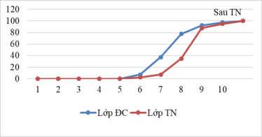 Hình 3.3. Biểu đồ đường tích lũy lớp TN và lớp ĐC ở lần kiểm tra sau TN.... 44
