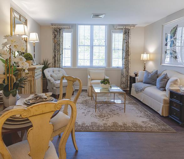 The living room features a cozy fireplace and floor-to-ceiling windows that open to a 750-square-foot deck, ideal for relaxing, entertaining, soaking in the hot tub, enjoying peaceful sunsets, or simply taking in the ever-changing river views. A lower-level 750-squarefoot patio overlooks landscaped grounds, gardens, and a new stone fire pit area.