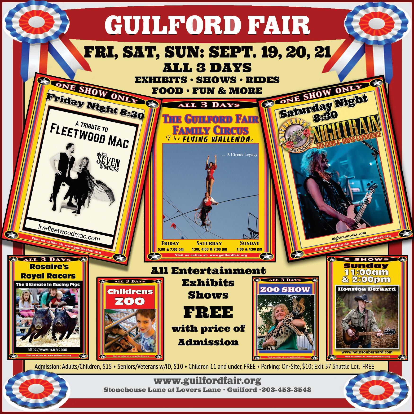 Established in 1859 and held the third full weekend of every September, the Guilford Fair returns to amaze and delight shoreline residents Friday, Sept. 19; Saturday, Sept. 20; and Sunday, Sept. 21, at the Guilford Fairgrounds on Stone House Lane.