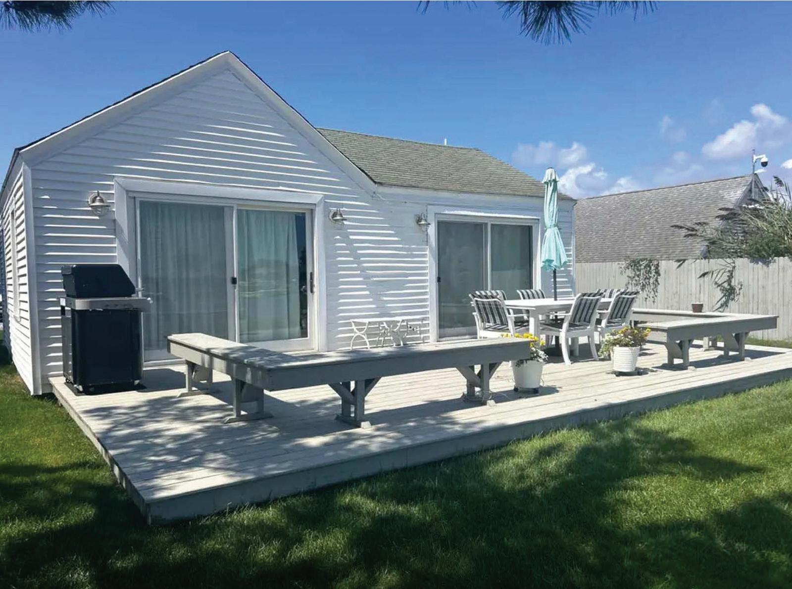 Inside, the cottage offers hardwood floors, a brick fireplace for cozy winter nights, and an ample kitchen that completes the picture of relaxed coastal charm.